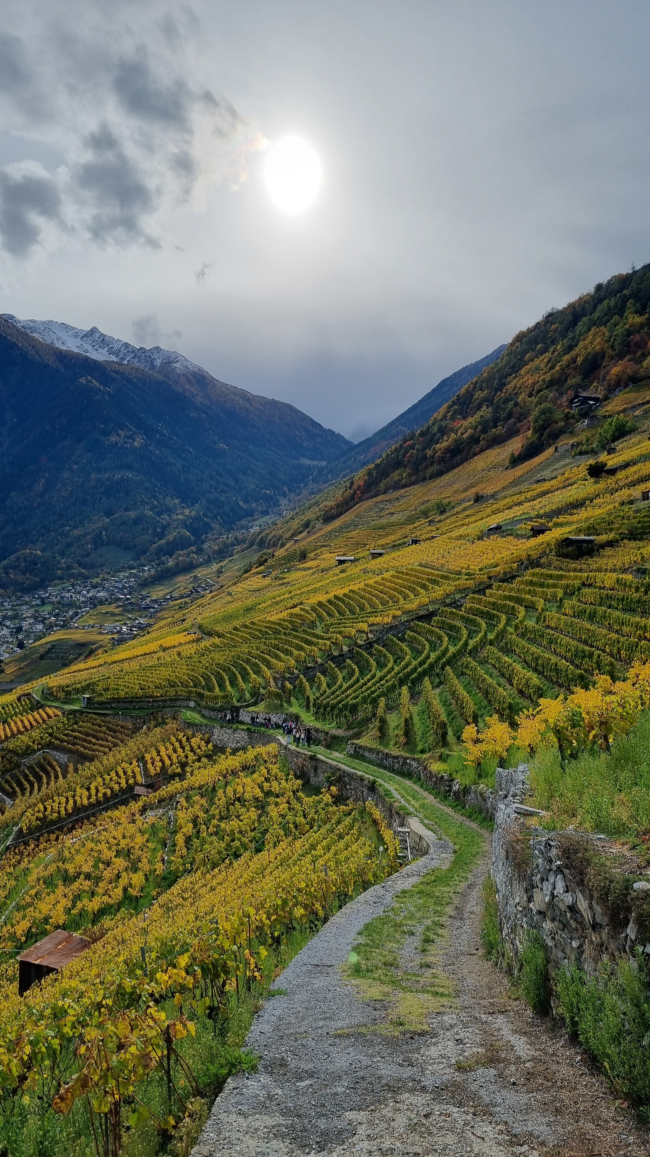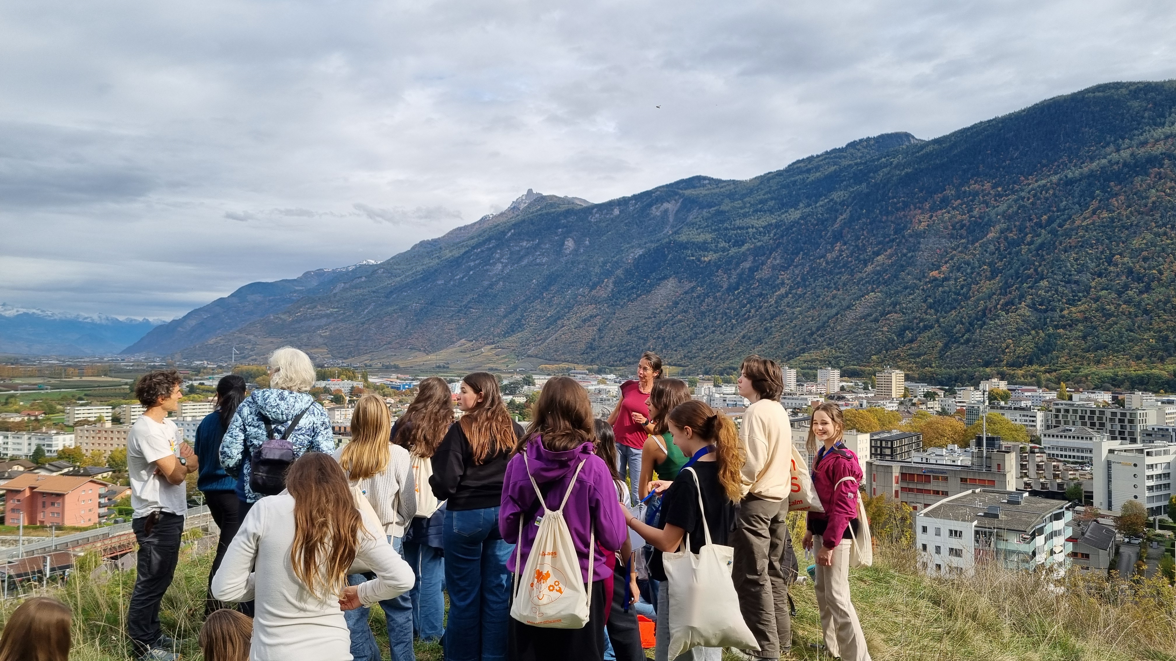 Ensuite, nous avons eu une matinée dense, avec beaucoup de notions abordées lors d’ateliers, le montage du télescope, la prise des images pour les bruits, le traitement dans la foulée de ces images pour les retirer de nos futurs images d’étoiles... Les participantes étaient très motivées, nous avons donc été jusqu’au bout des activités. Après le pique nique à l’école et au soleil, nous sommes parties pour cette fameuse randonnée dont les paysages étaient très beaux et impressionnants. Les vignes et les arbres automnaux offraient un vif camaïeu rehaussé par les premières neiges des sommets.
