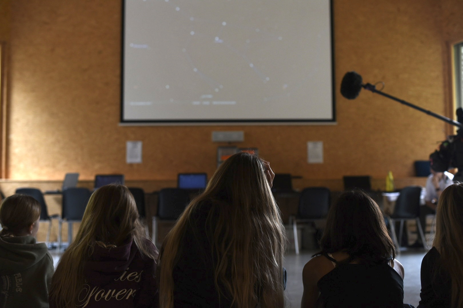 Après le petit déjeuner, nous sommes parties à l’école pour les temps sciences de la journée. Nous avons commencé par le forum et questionner les participantes sur ce qu’elles ont aimé ou moins. Pour l’instant, il semblerait que tout se passe bien !Nous avons commencé par une séance de planétarium. Etoile polaire, constellations, nébuleuses, galaxies ont été explorées. Un groupe a passé son permis de pilotage avant d’aller piloter le télescope. En parallèle, il y avait aussi un atelier sur les constellations. Pendant ce temps, un autre groupe apprenait à se servir d’une carte du ciel et comment choisir les objets à aller observer dans le ciel nocturne. Durant toute cette matinée, les journalistes nous ont filmé et interviewé certaines.