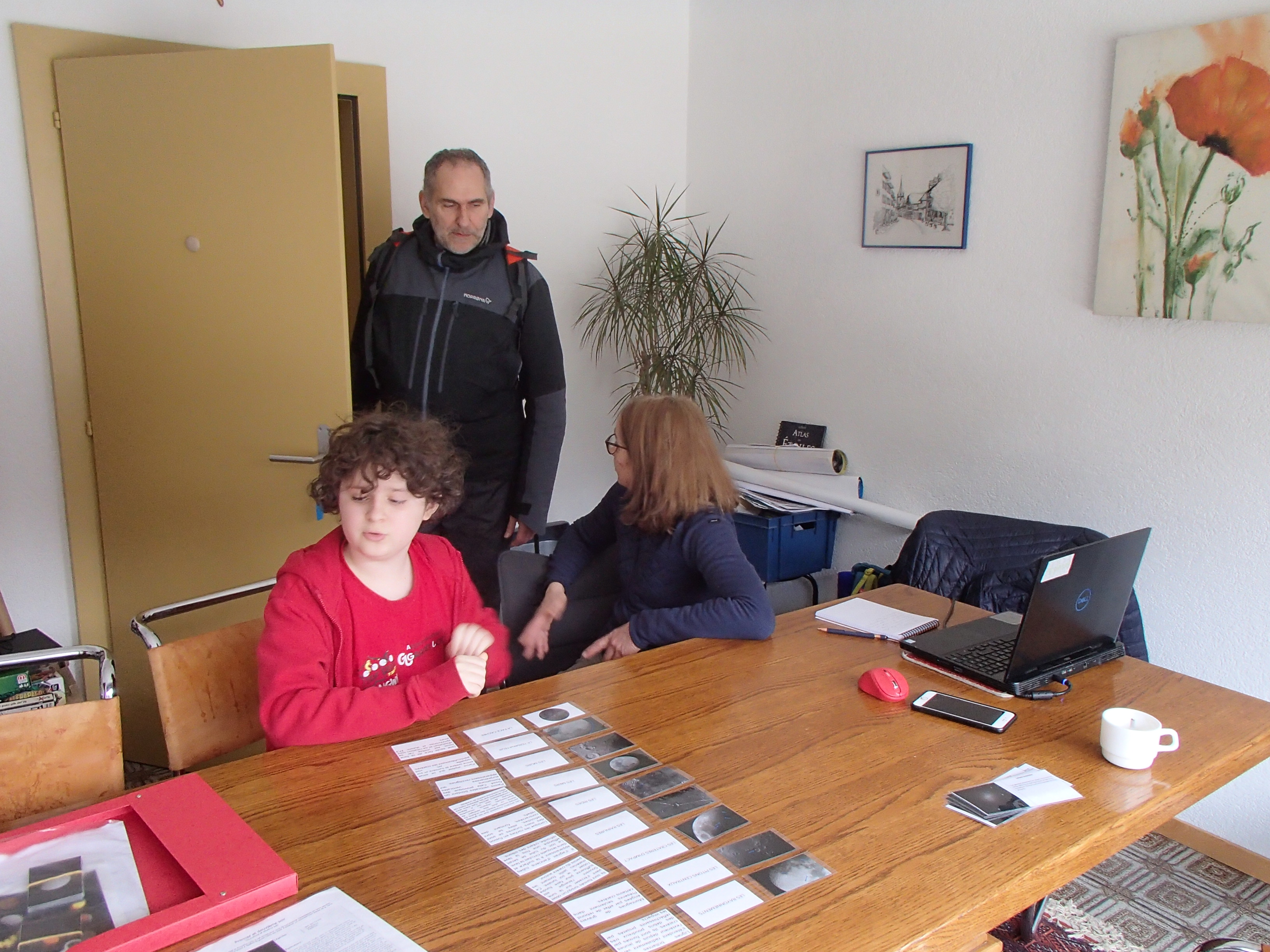 Cet après midi, le temps s’améliore mais reste bien maussade. Ils annoncent peut être un peu de neige cette nuit et en début de matinée... nous verrons bien si tout est blanc demain matin. En attendant, activité pédagogique autour des exoplanètes, nous mettons en place des ateliers ludiques qu’Adam connaît déjà bien... mais qu’il attendait avec impatience ! J’ai nommé Salomé ! Il s’agit de trouver les caractéristiques d’exoplanètes afin de définir laquelle est une « exo-terre ». Pas de chance pour Adam, il choisit une planète différente de d’habitude... mais toujours pas la bonne hélas, c’est Frédéric qui tire le gros lot et découvre une exoterre... Comme pour la galette, on a pas la fève à chaque fois !