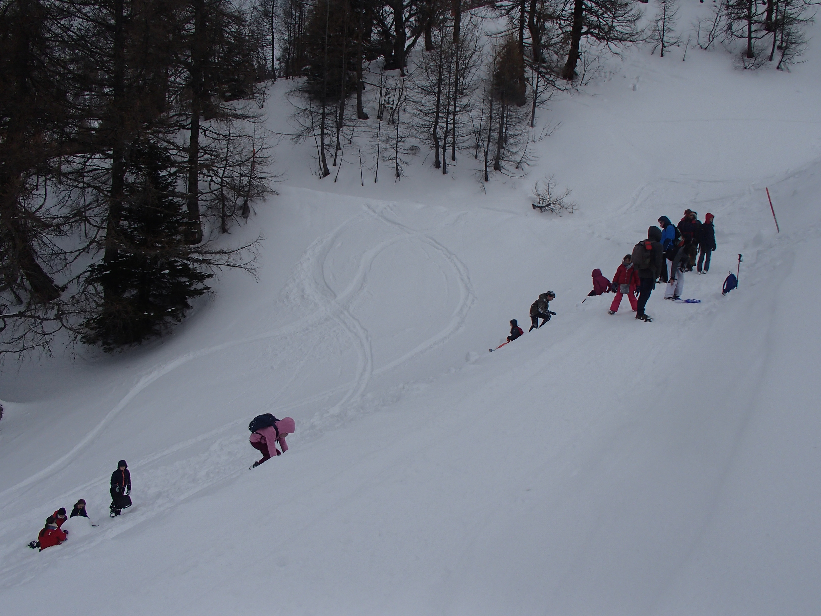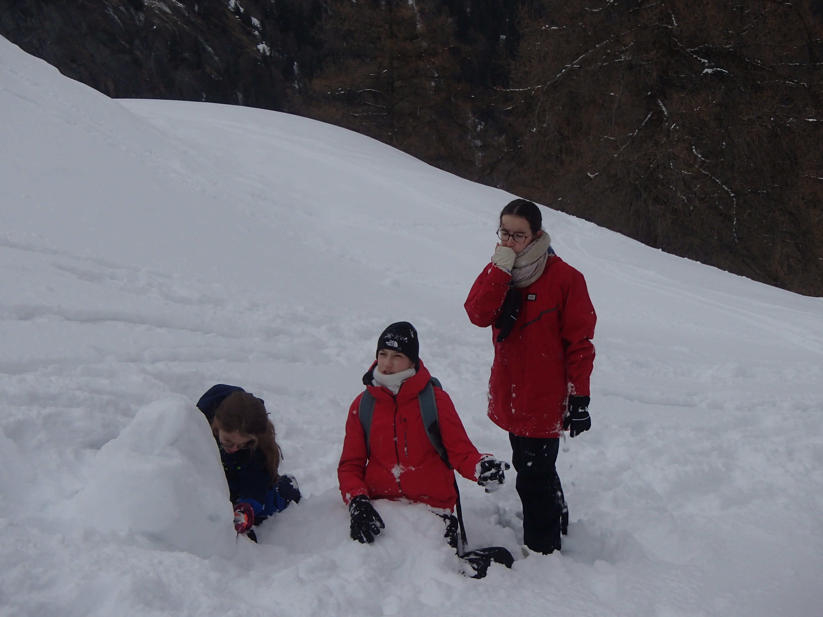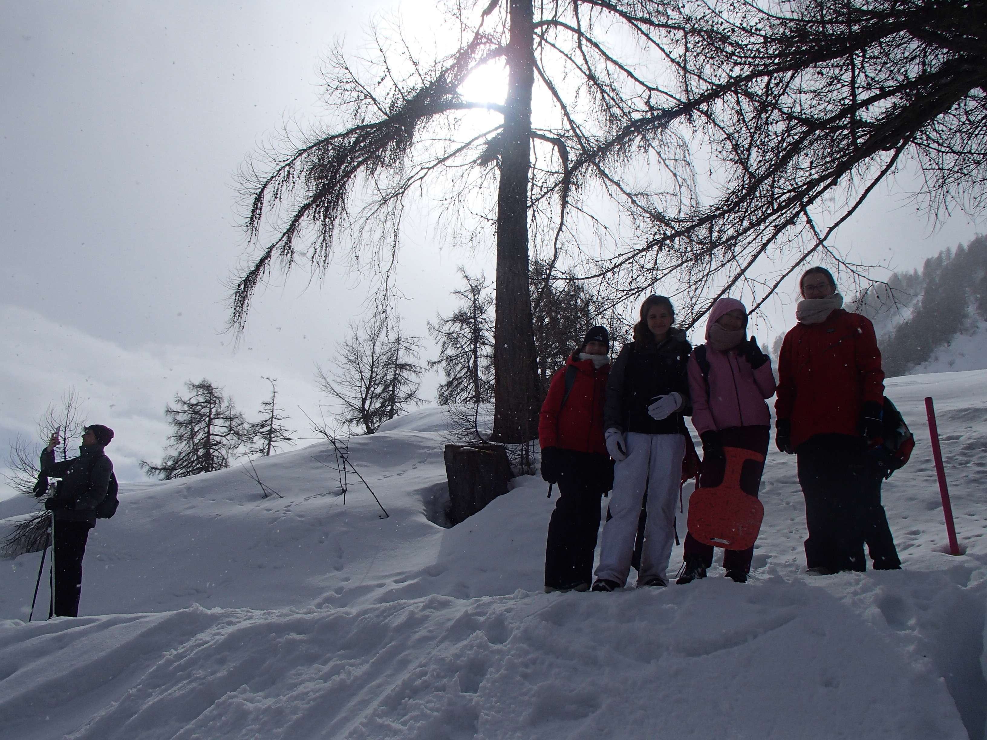 Et nous voici de retour d’une chouette journée de neige tous ensemble, peu de science aujourd’hui. Départ vers 10h ce matin avec le pique-nique, nous montons en télésiège jusqu’à « Jorasse » à quasiment 2000 mètres d’altitude. Depuis là, nous ne faisons que descendre vers Ovronnaz dans la neige, ambiance montagne ! Nous alternons marche, descentes en luge dès que cela s’y prête, bataille de boules... bref on profite de la neige !