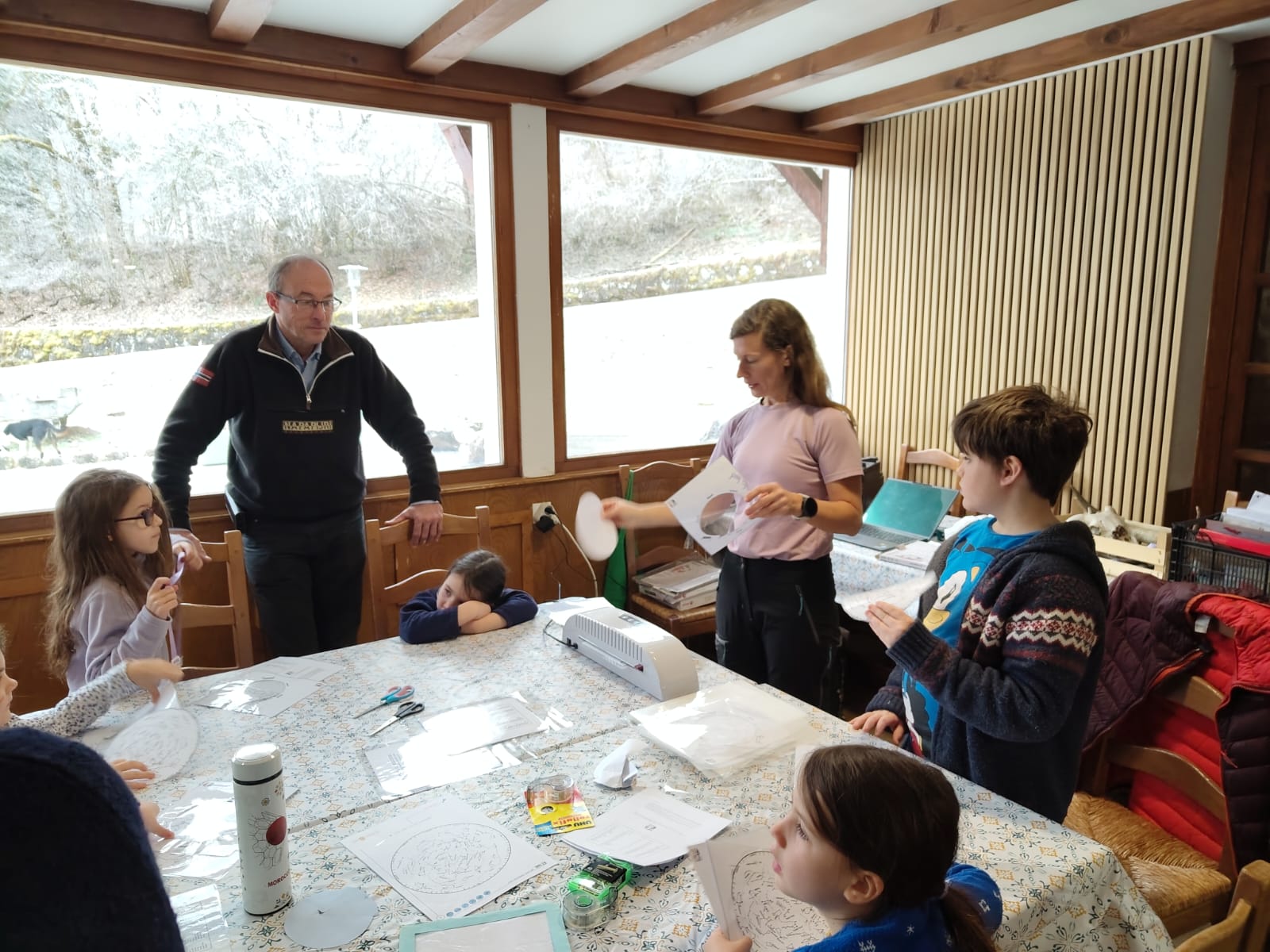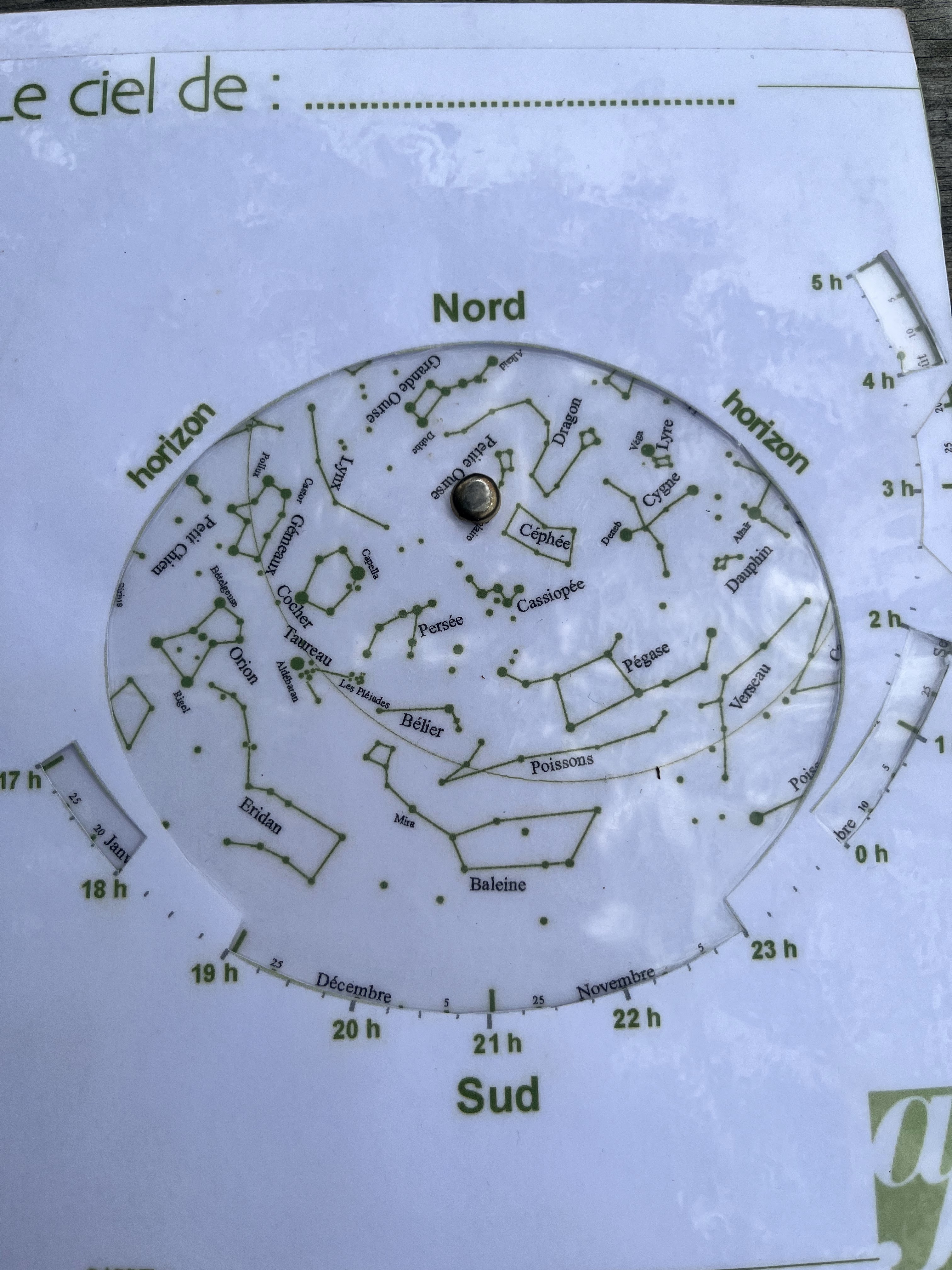 Ce matin, un atelier découpage se prépare pour réaliser une carte du ciel. Outil indispensable pour un astronome, elle permet de se repérer dans le ciel nocturne grâce aux étoiles et aux constellations. Chaque participant pourra repartir avec sa carte.