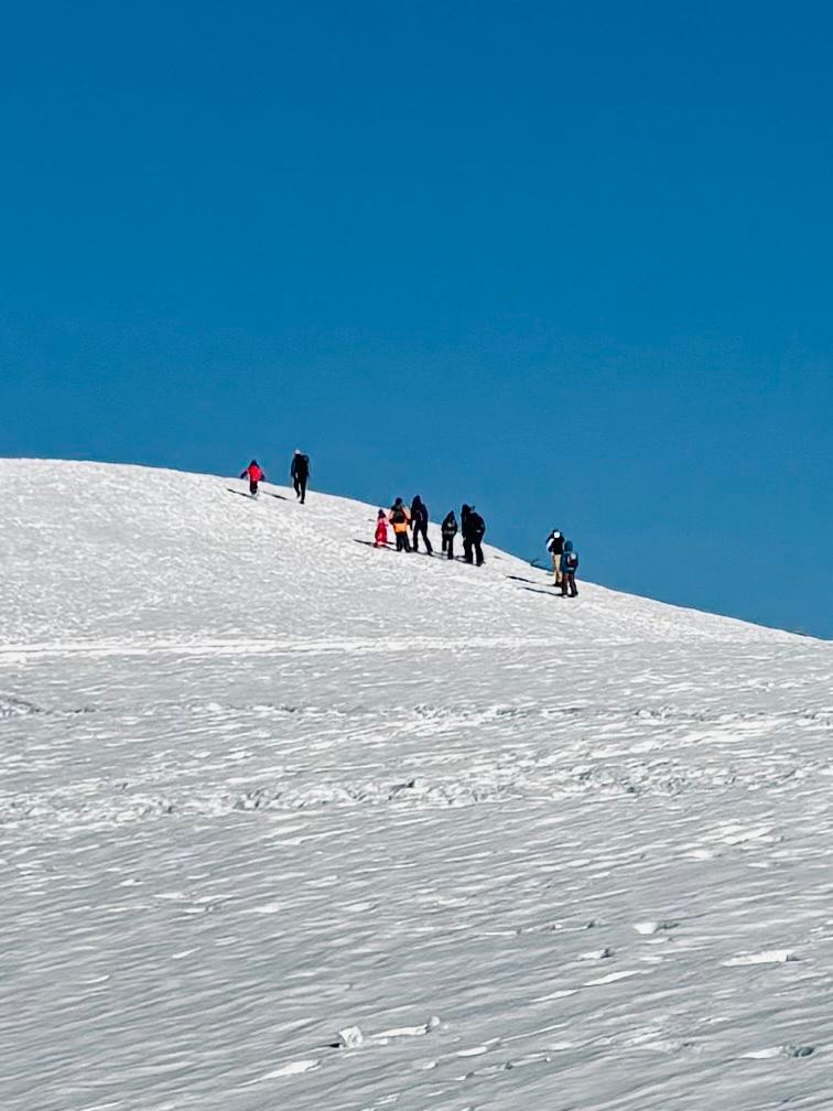 Une partie du groupe a continué à crapahuter dans la neige pour monter toujours plus : les glissades sur les fesses étaient d’autant plus longues. Retour au col pour rejoindre Samoëns en bus. Certains étaient fatigués mais avaient un grand sourire. Vive la montagne ☃️