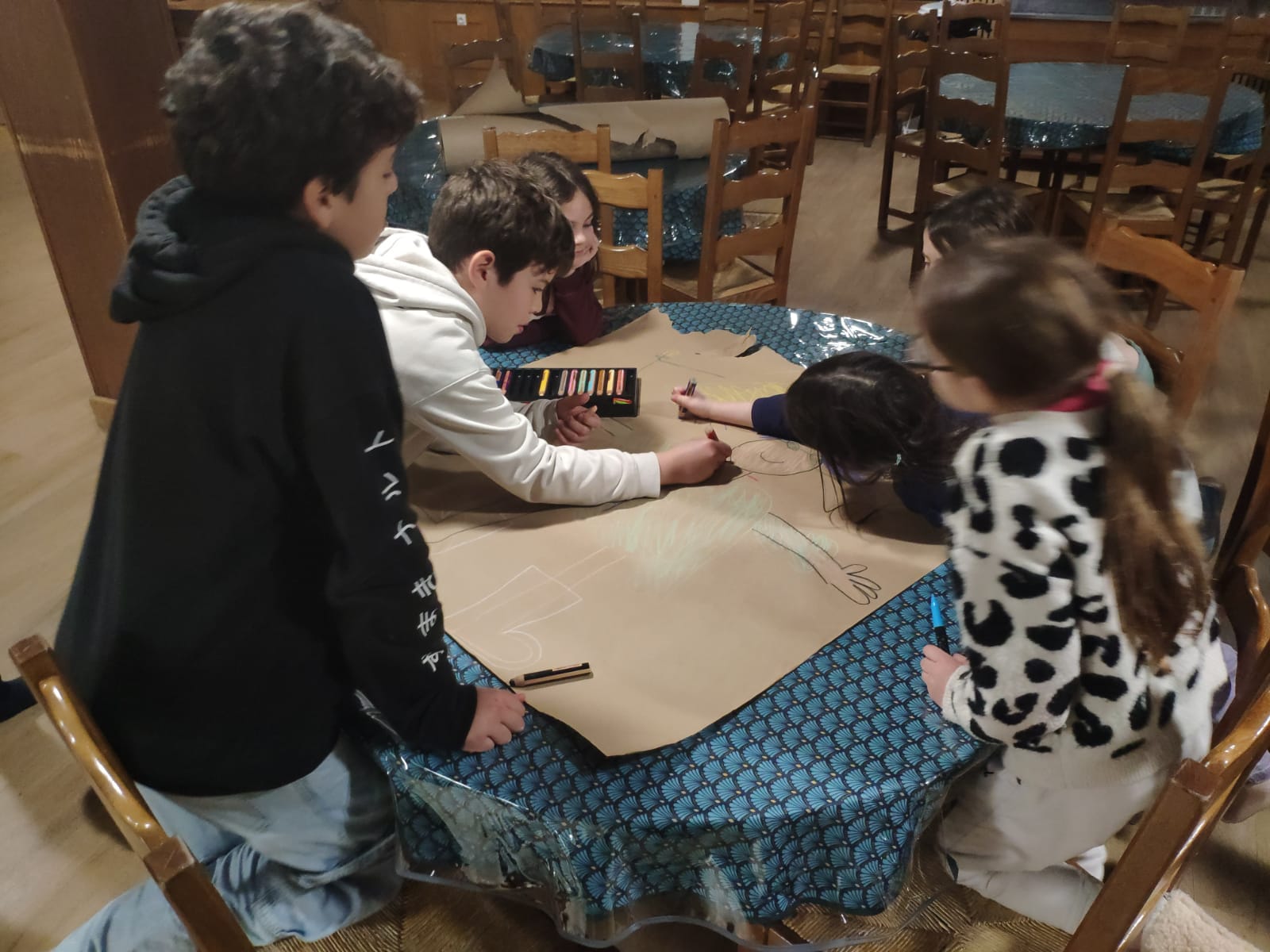 Après le gouter, parents et enfants se sont retrouvés pour discuter planètes du système solaire. La petite Mercure, la brulante Vénus, notre Terre et sa Lune, Mars la rouge, la géante Jupiter, la jolie Saturne, et nos deux belles bleues Uranus et Neptune. Une fois les planètes positionnées à l’échelle des distances, c’est l’univers que nous avons dessiné sur une grande feuille !