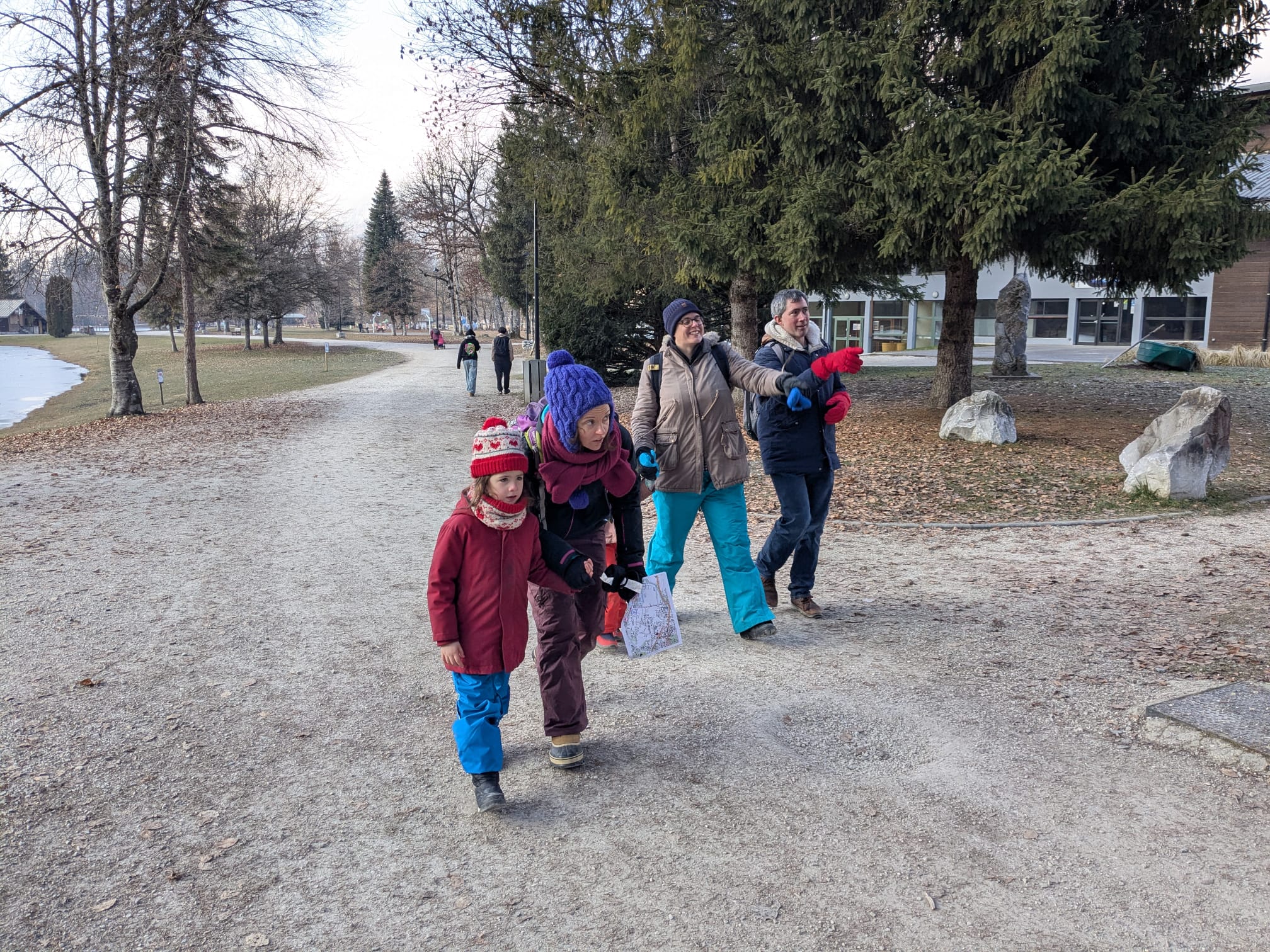Après un pique nique à Samoëns, patinoire et marché, nous nous sommes tous réunis au lac de Samoëns pour la chasse au trésor de Nouvel An ! Par équipe, des devinettes, défis et indication de localisation ont permis aux équipes de créer une phrase permettant de trouver le trésor à l’aide d’un détecteur de victime d’avalanche et d’une boussole.