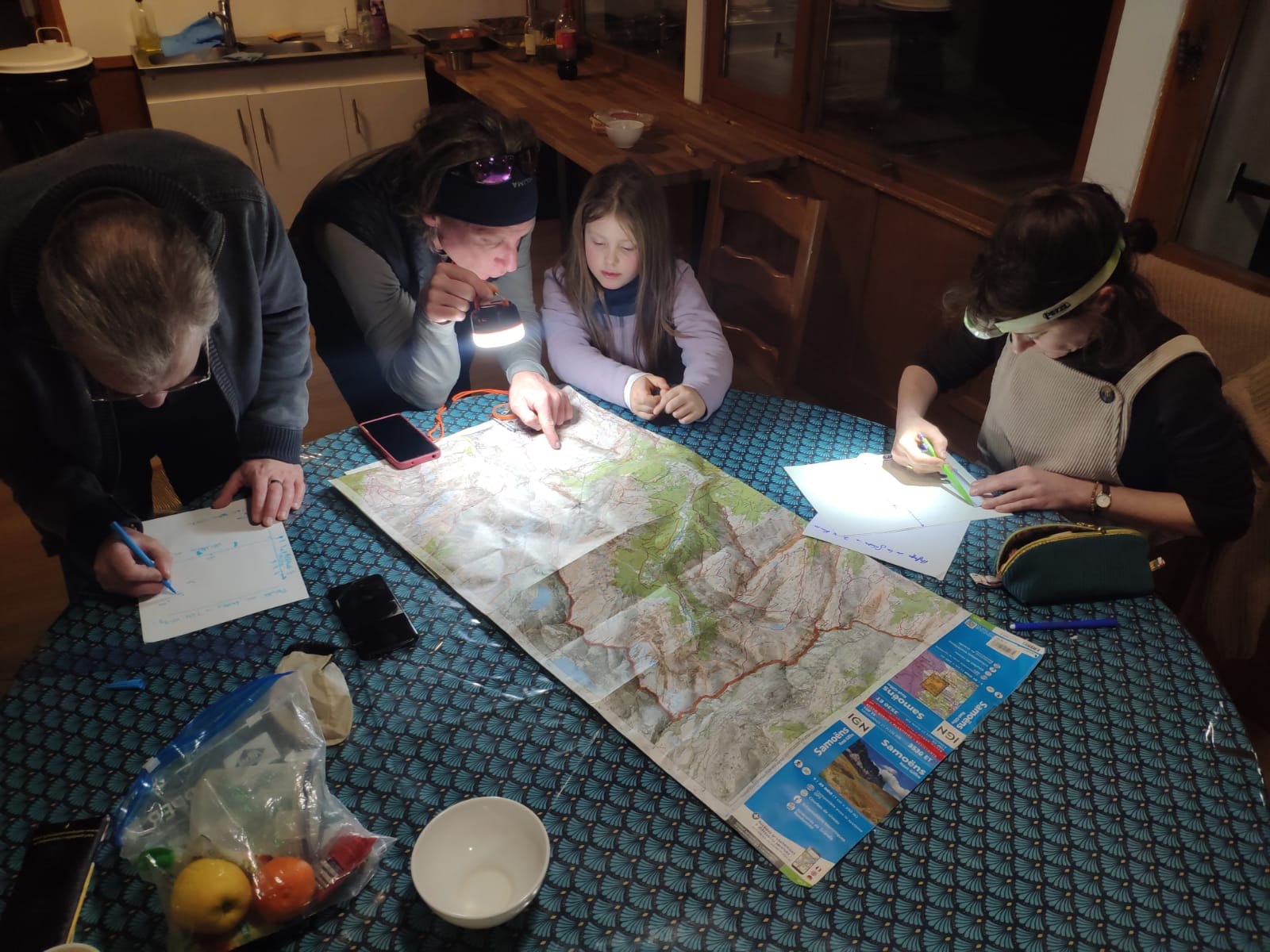 Ce soir tout le monde est bien arrivé et installé au chalet Le Sauvageon. Après un bon repas nous avons fait des présentations de chacun et des plannings de la semaine.