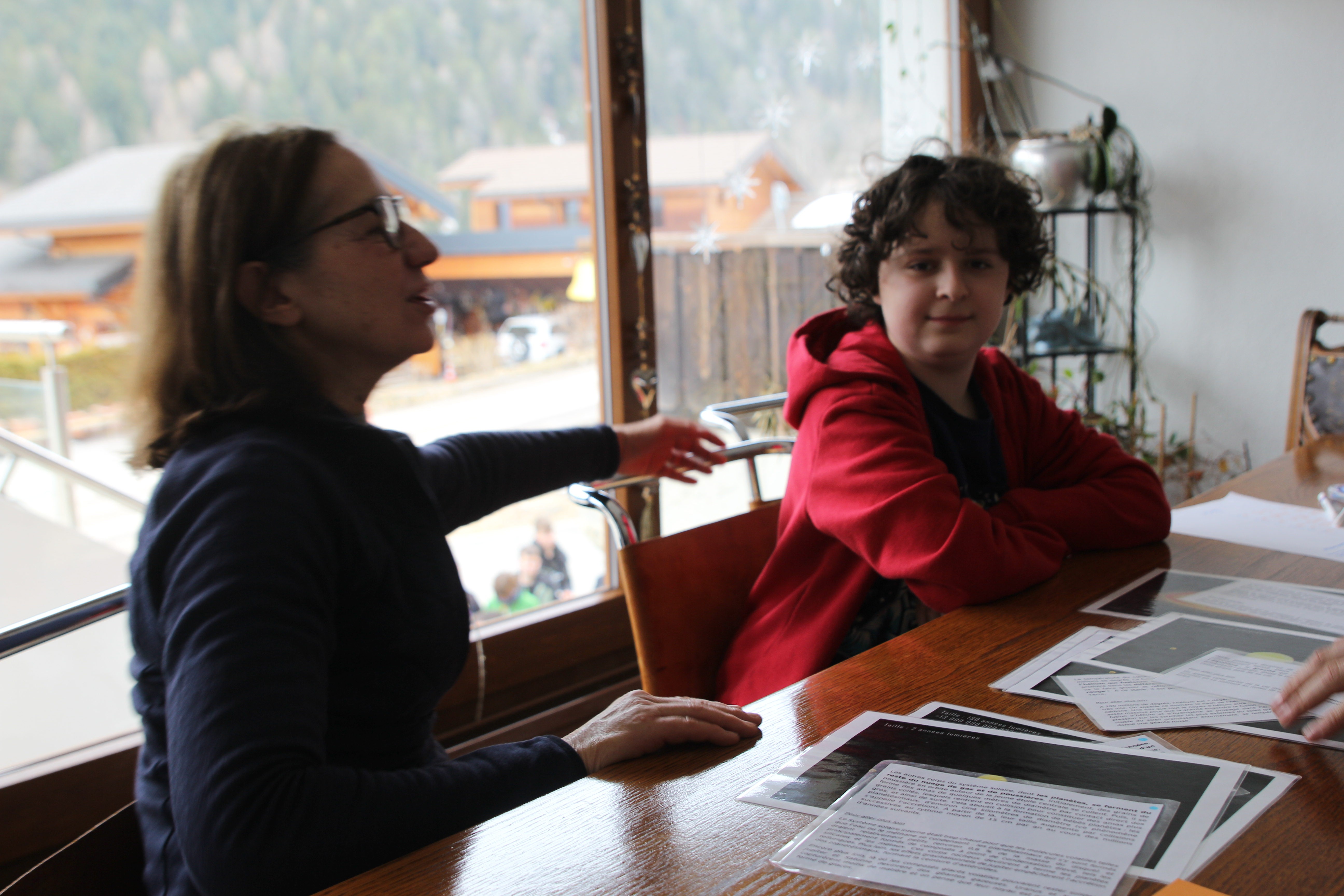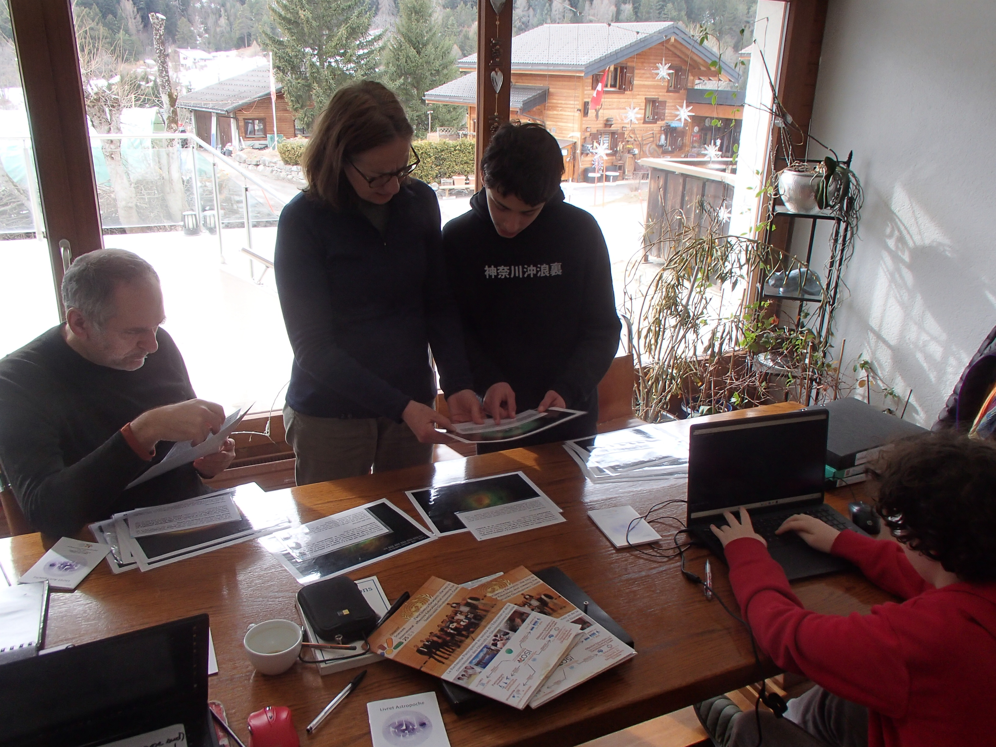 La matinée est placée sous le signe de la structure du soleil, puis sur la lune (formation, reliefs, lunaisons...) pour Isabelle et Adam, pendant que Frédéric et Nehuén partent profiter des pistes et de la neige fraîche tombée hier.