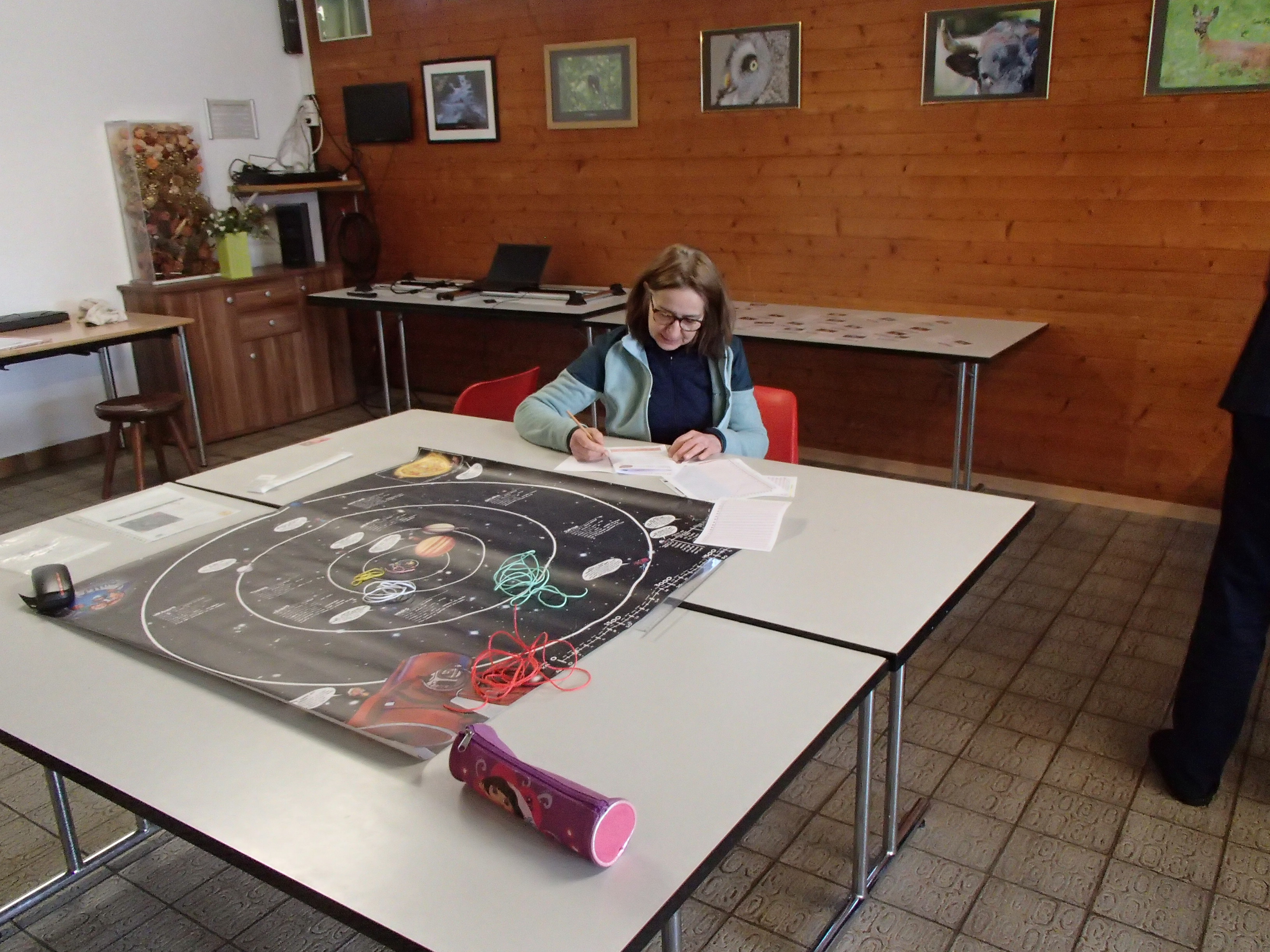 Une deuxième journée plus nuageuse comme prévu. Nous avons donc privilégié les activités en intérieur. Le matin, nous nous sommes penchés sur la vie passionnante de notre étoile le soleil, de sa naissance dans une nébuleuse de gaz il y a environ 4,5 milliards d’année, jusqu’à son avenir lointain.