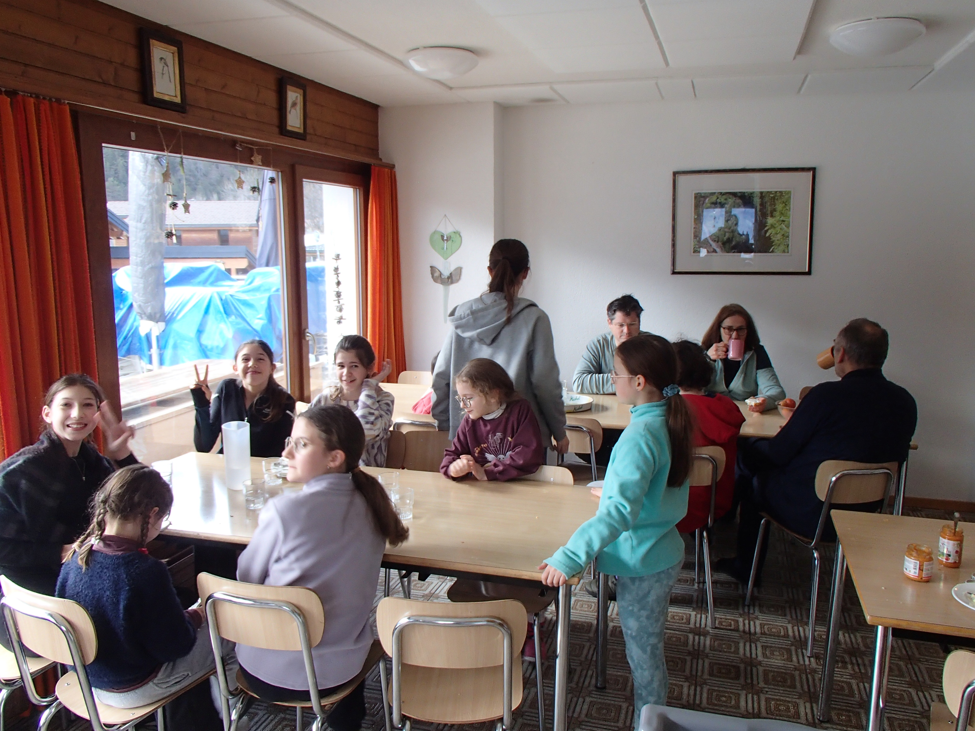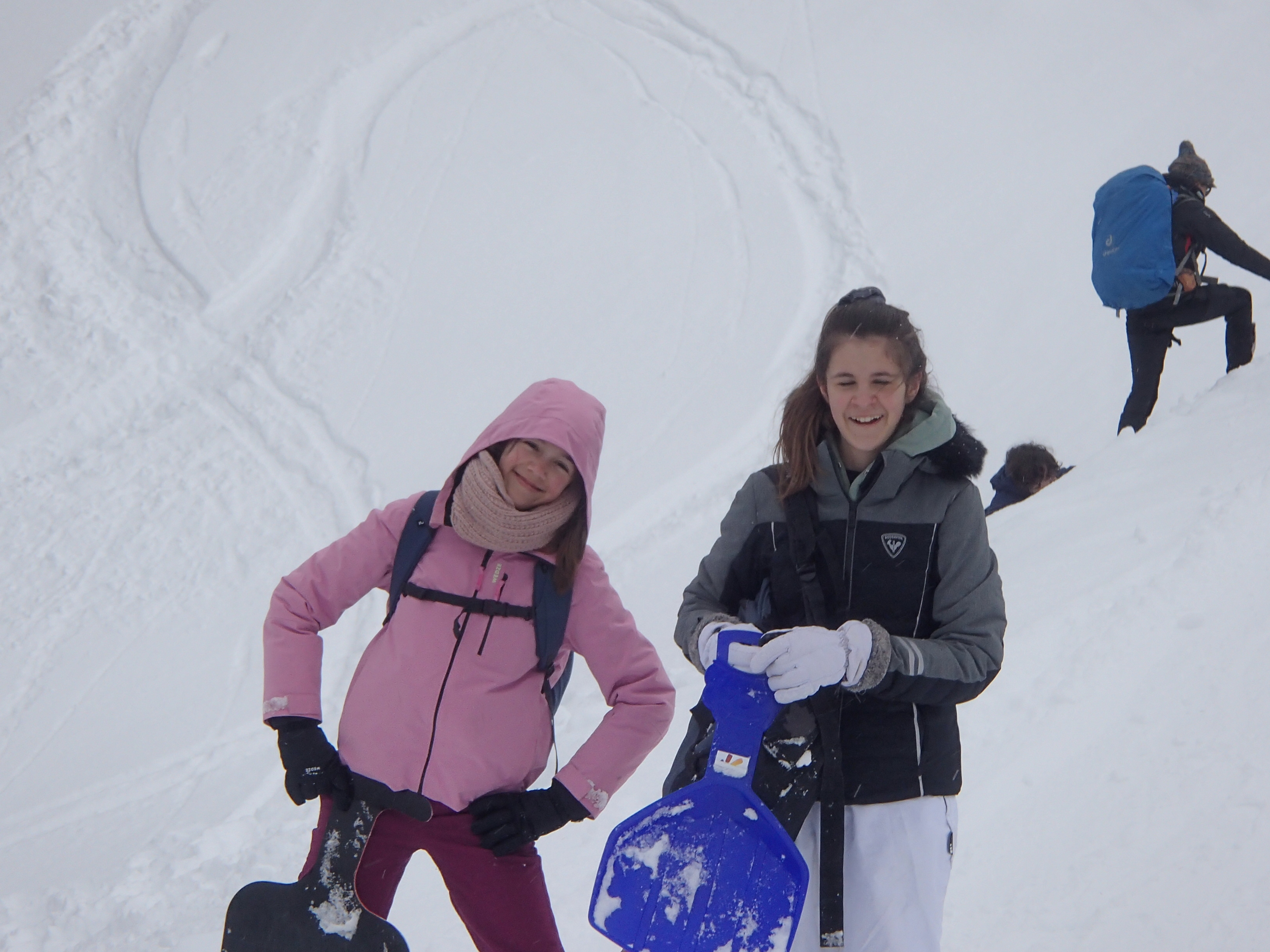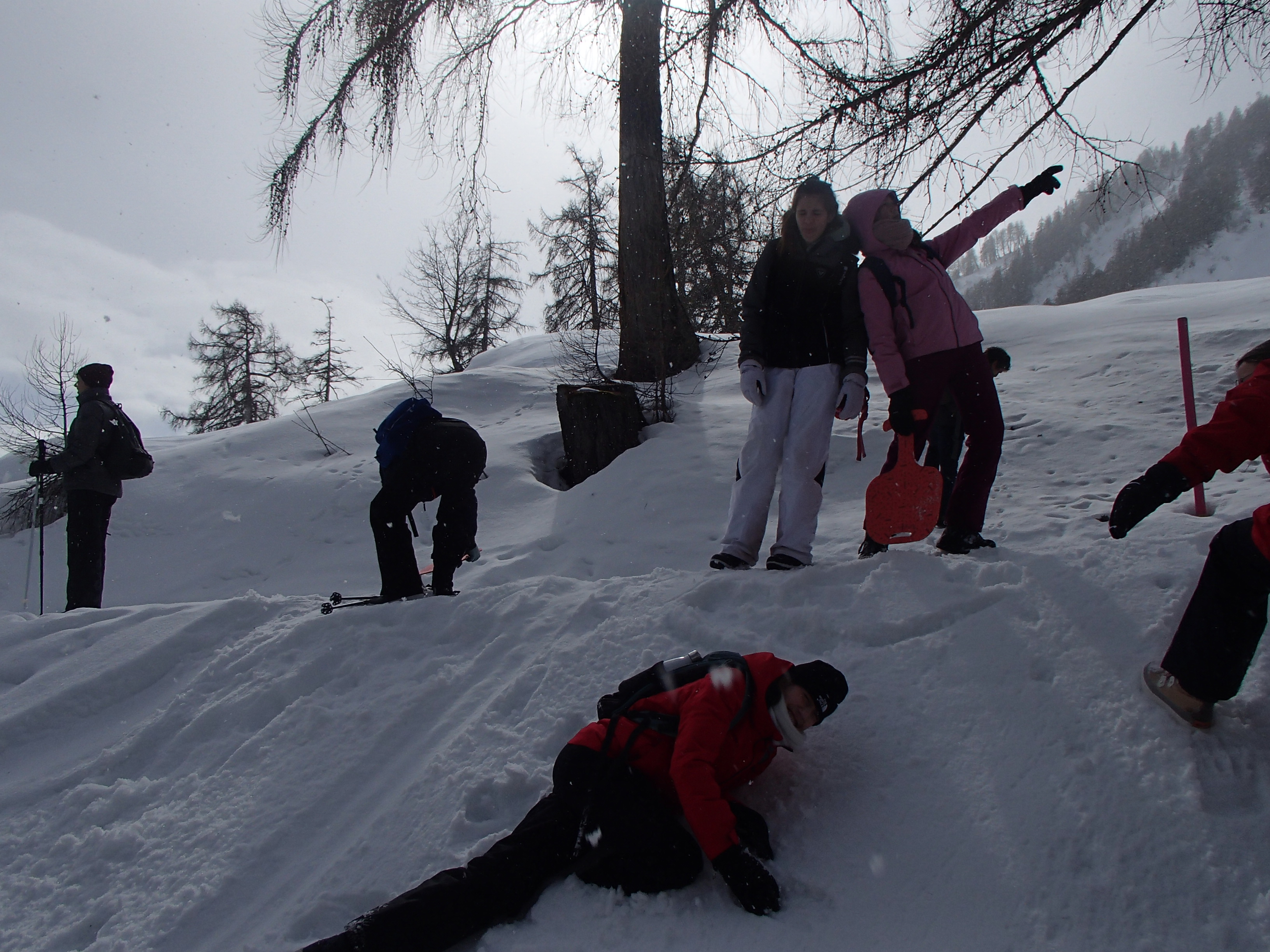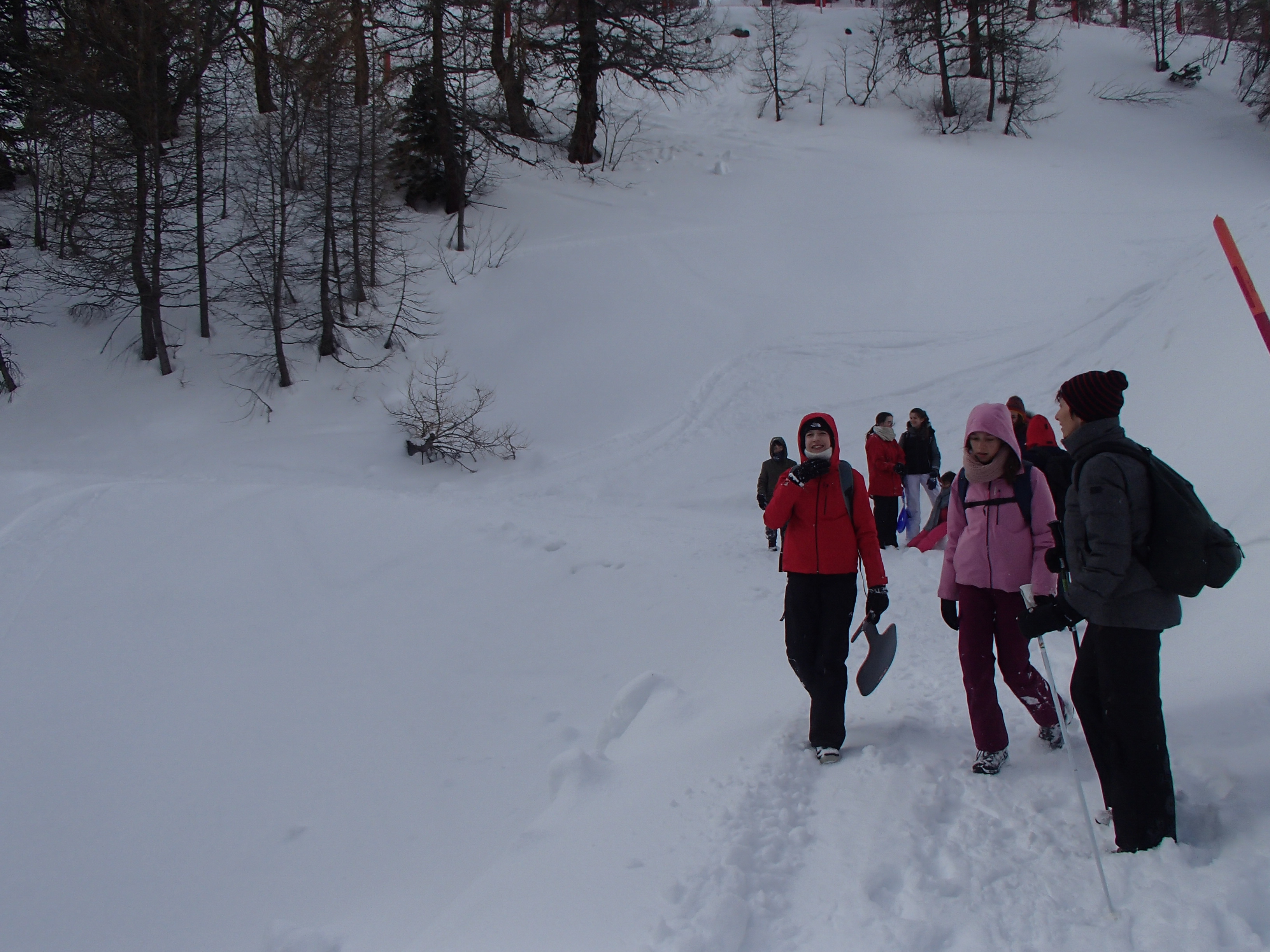 Et nous voici de retour d’une chouette journée de neige tous ensemble, peu de science aujourd’hui. Départ vers 10h ce matin avec le pique-nique, nous montons en télésiège jusqu’à « Jorasse » à quasiment 2000 mètres d’altitude. Depuis là, nous ne faisons que descendre vers Ovronnaz dans la neige, ambiance montagne ! Nous alternons marche, descentes en luge dès que cela s’y prête, bataille de boules... bref on profite de la neige !