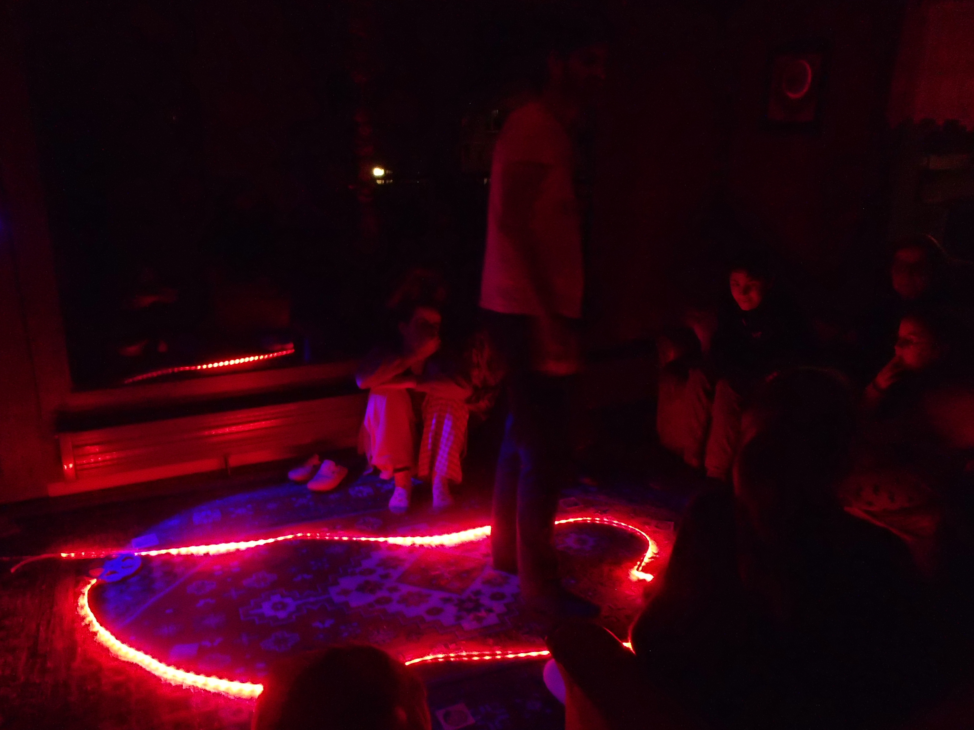 Après un solide goûter, une bonne partie du groupe regarde un documentaire sur les loups, Adam qui l’a déjà vu préfère en autonomie construire un spectromètre en papier et carton, puis bouquiner tranquillement. Ce soir nous prévoyons une petite veillée « conte » pour petits et grands, puis un « loup-garou » pour les plus grands.