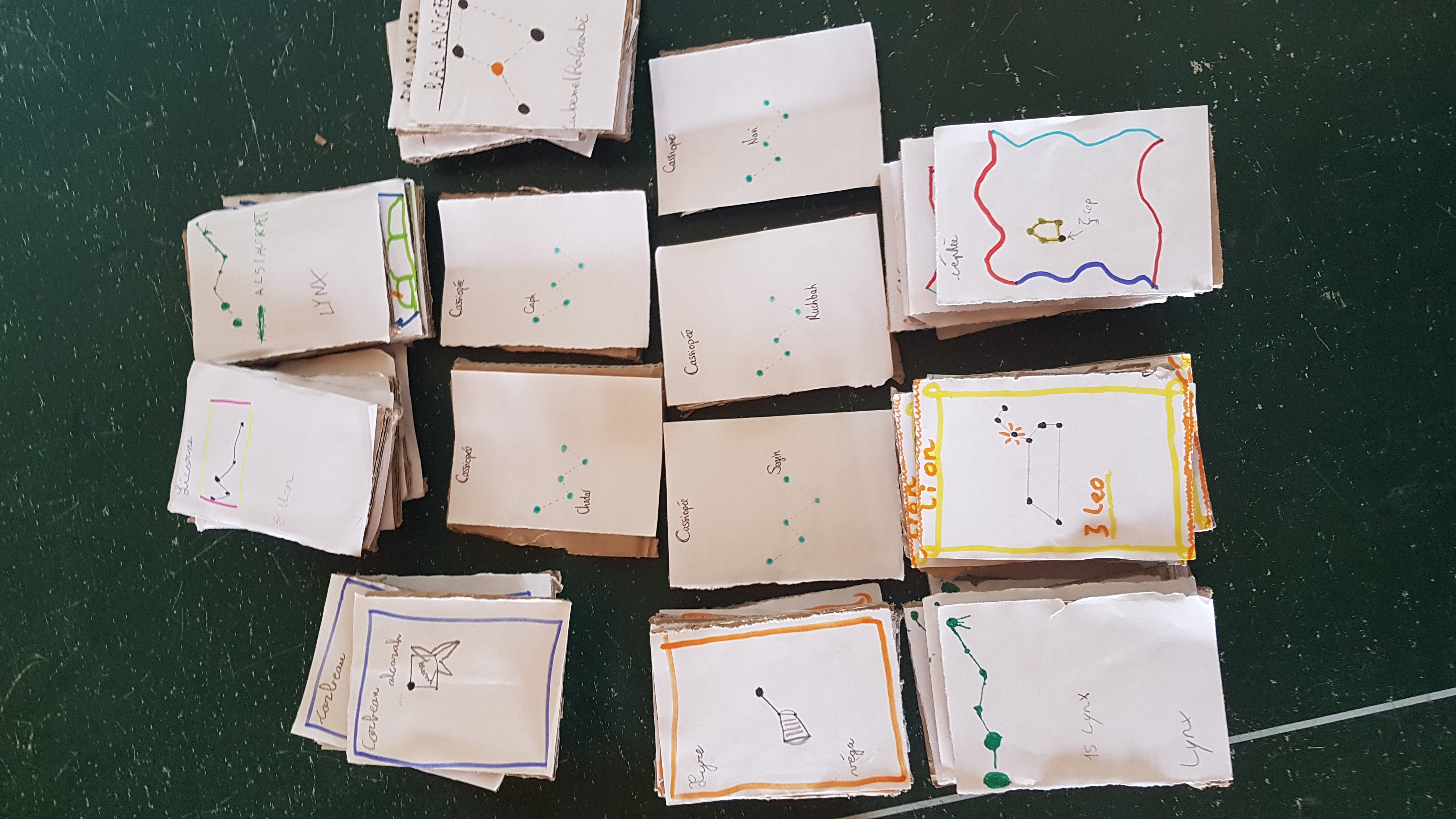 En parallèle de l’activité traitement d’images certains d’entre nous ont inventé et créé un jeu des 7 familles des constellations en s’aidant de Stellarium, quelques feutres, papier, carton, et de leur 10 doigts