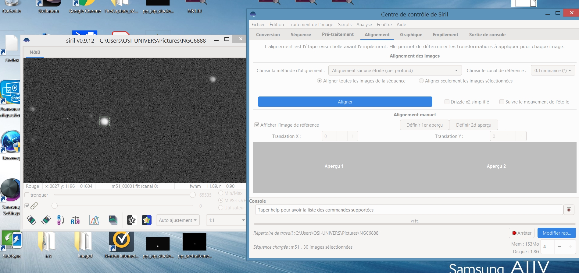 Pour cela, nous avons utilisé le logiciel Siril qui nous permet d’aligner et d’empiler les différentes images.