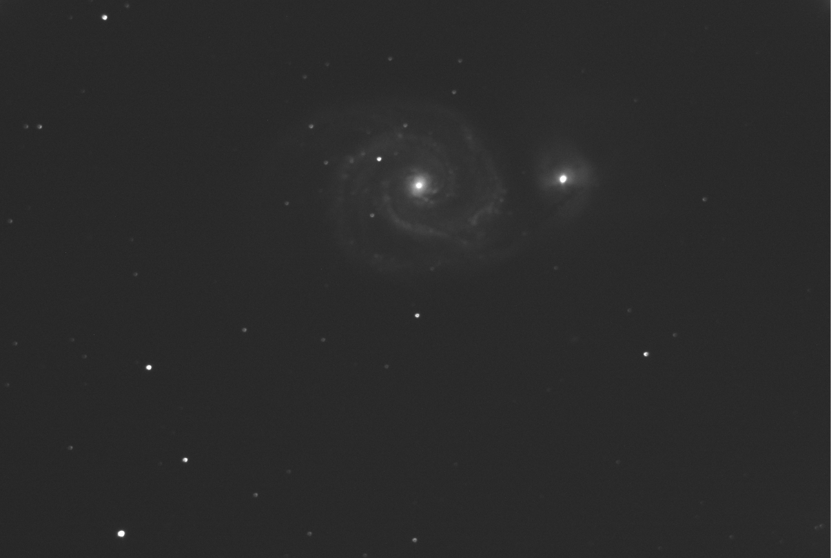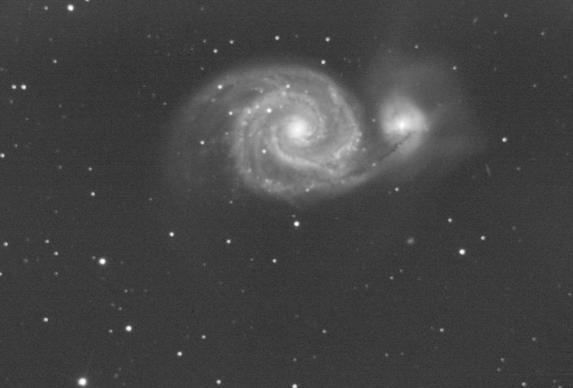Après l’acquisition des images de la galaxie M51 (30x 60 secondes de pose + 11x darks ( = images prises avec le cache )) lundi soir, nous sommes passés au traitement des photos mardi après-midi.