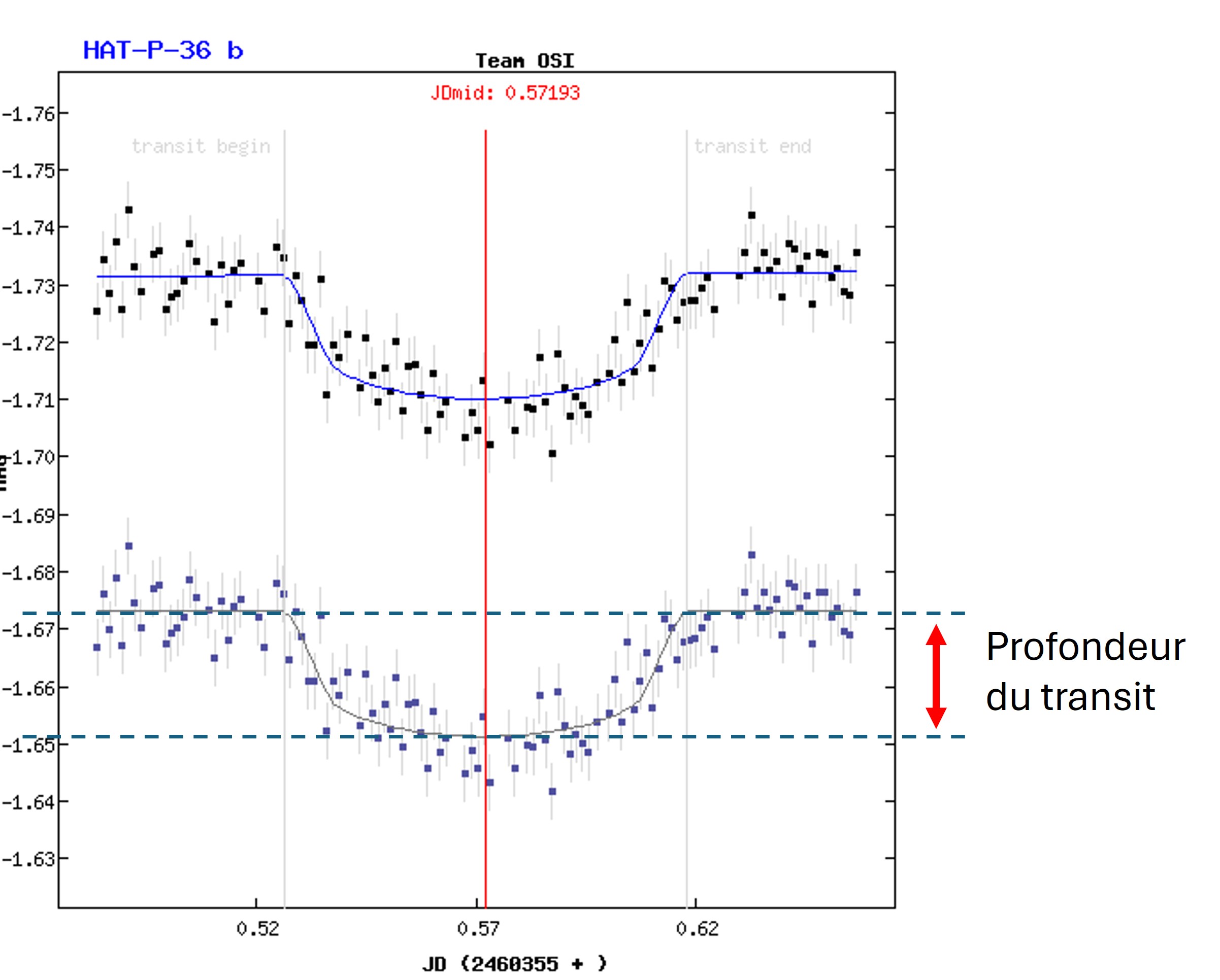 Nous obtenons une profondeur de transit, que nous pouvons utiliser dans la formule suivante :