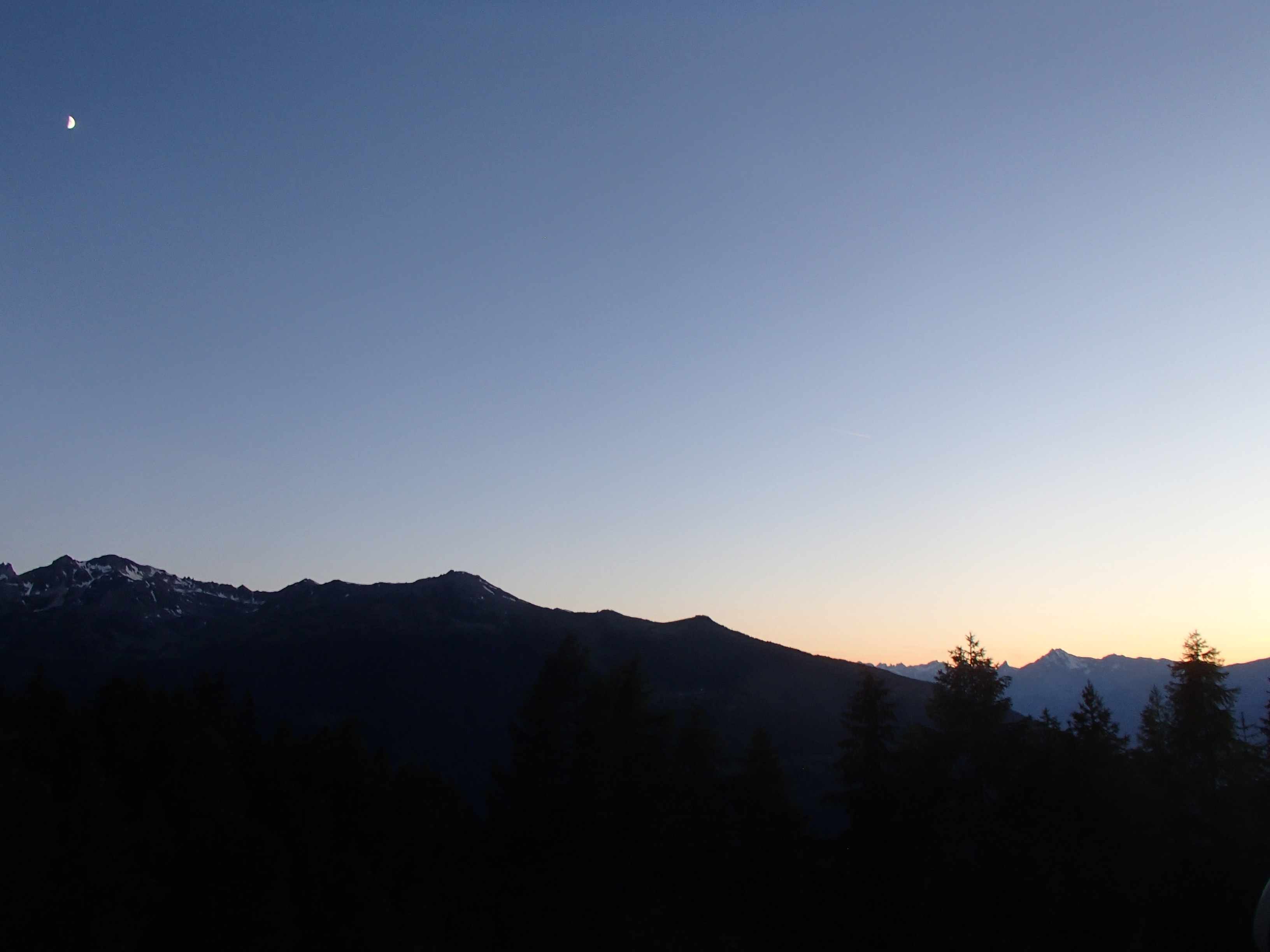 Quelques frayeurs en début de veillée, avec un voile épais qui ne voulait pas se détacher des sommets, mais tout a fini par rentrer dans l’ordre et nous avons pu admirer toute la magnificence du ciel du Val d’Anniviers.