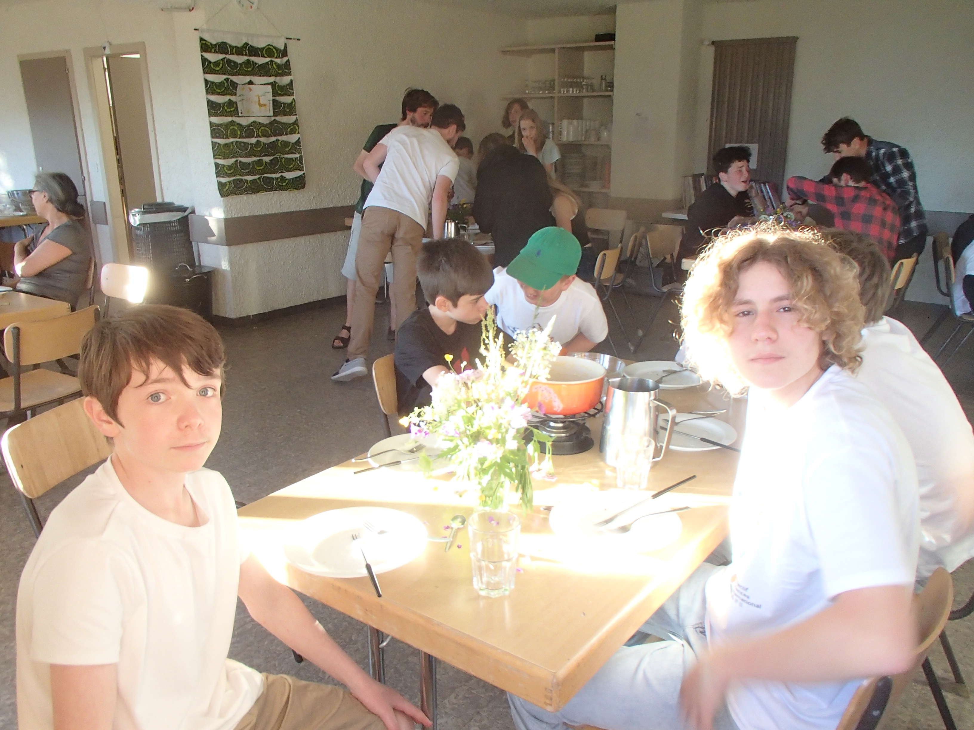 Ensuite pour la plupart il est temps de faire les valises... juste à temps pour profiter d’une dernière soirée commençant par un repas digne d’un restaurant valaisans : Fondue et mousse au chocolat !