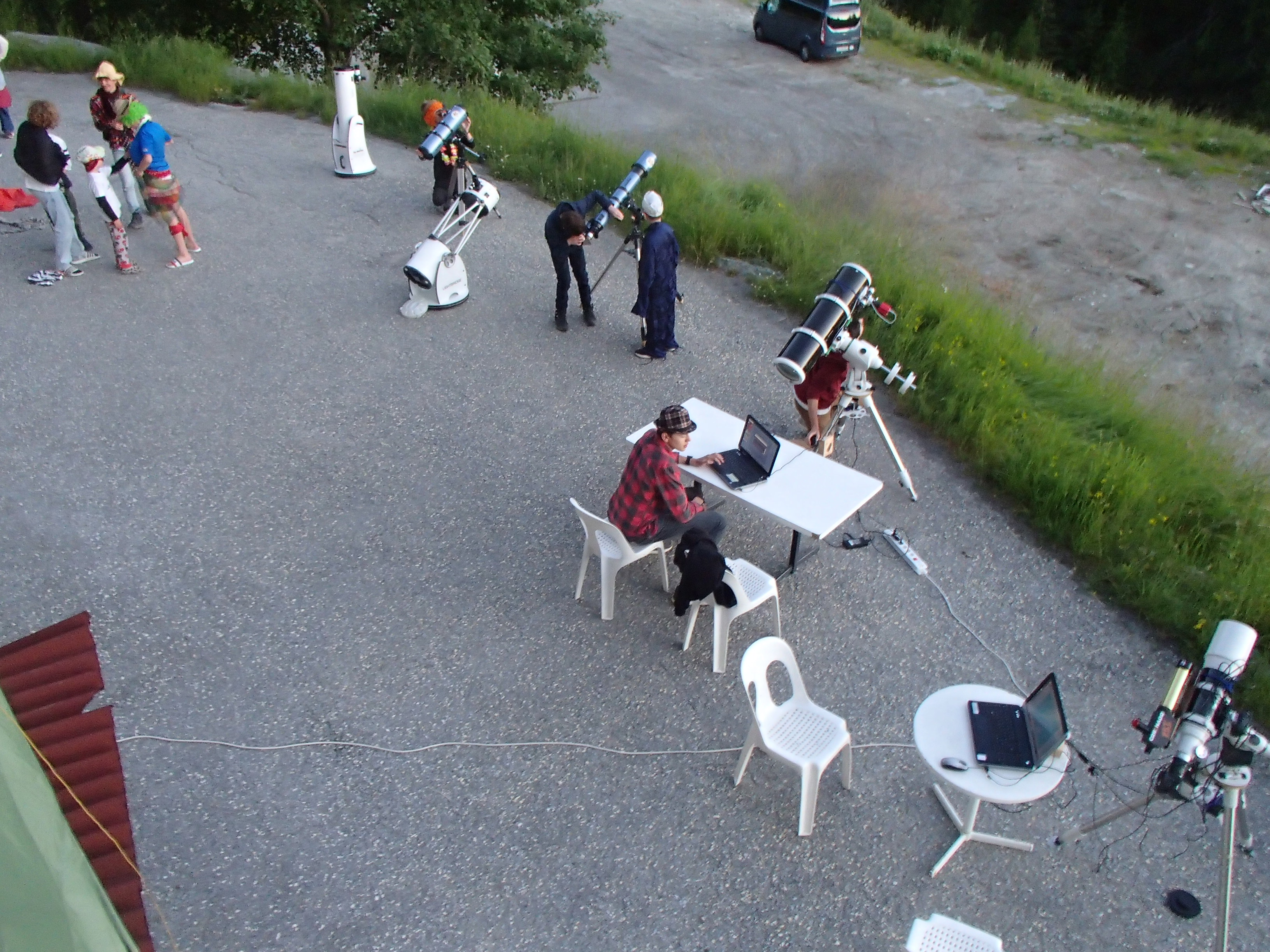 L’après midi tout le monde met les mains « dans le cambouis » pour apprendre à mettre en place et manipuler un télescope. Avec un petit jeu « trouver charlie » pour s’entrainer. Les anciens, qui sont déjà venus l’année dernière, se réapproprient la lunette motorisée et s’entrainent à prendre des photos du soleil (résultat à suivre).