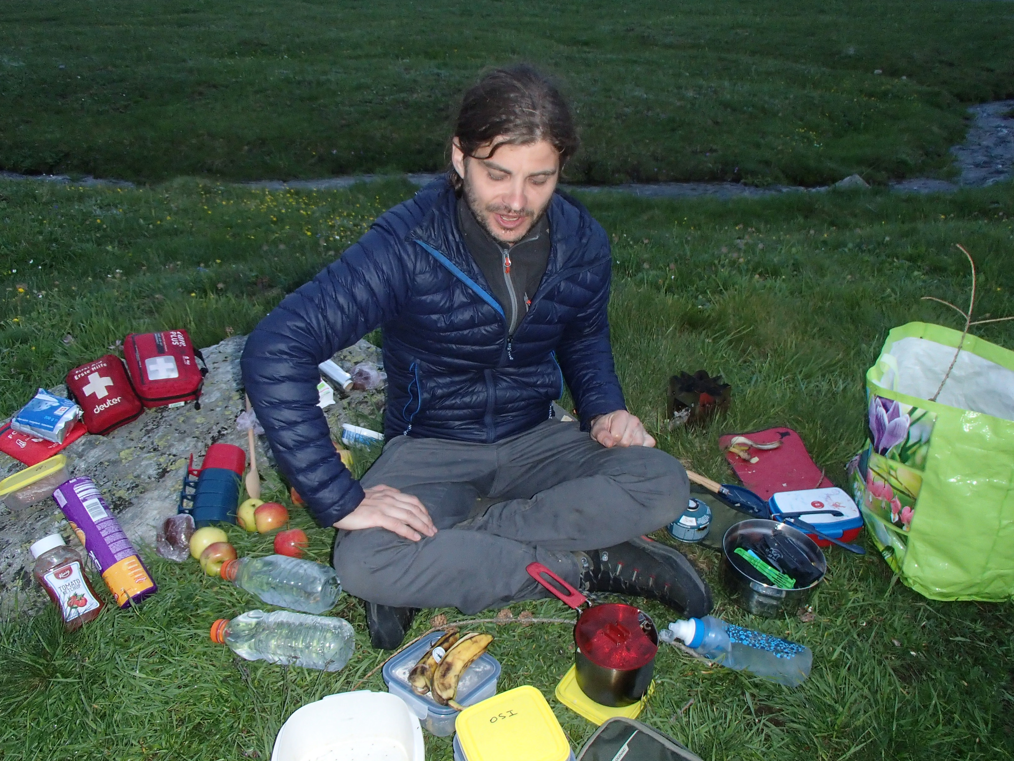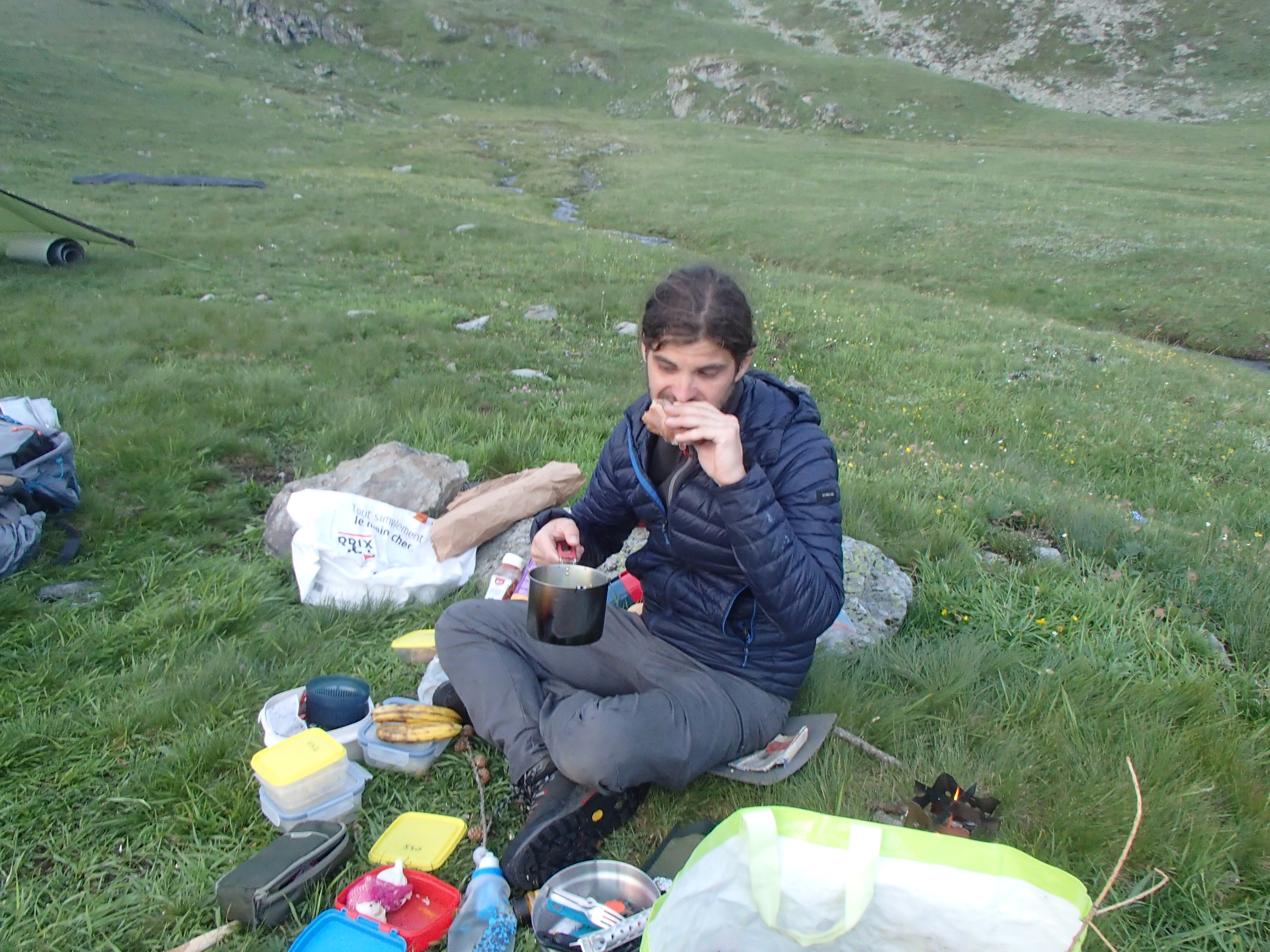 Ce matin, après un lever vers 10h pour tout le monde, il est temps de préparer les sacs pour partir en bivouac. Il faut bien deux bonnes heures pour y mettre tout le matériel (sans rien oublier) ainsi que le repas de ce soir. Mais à midi et demi tout le groupe est sur le départ.