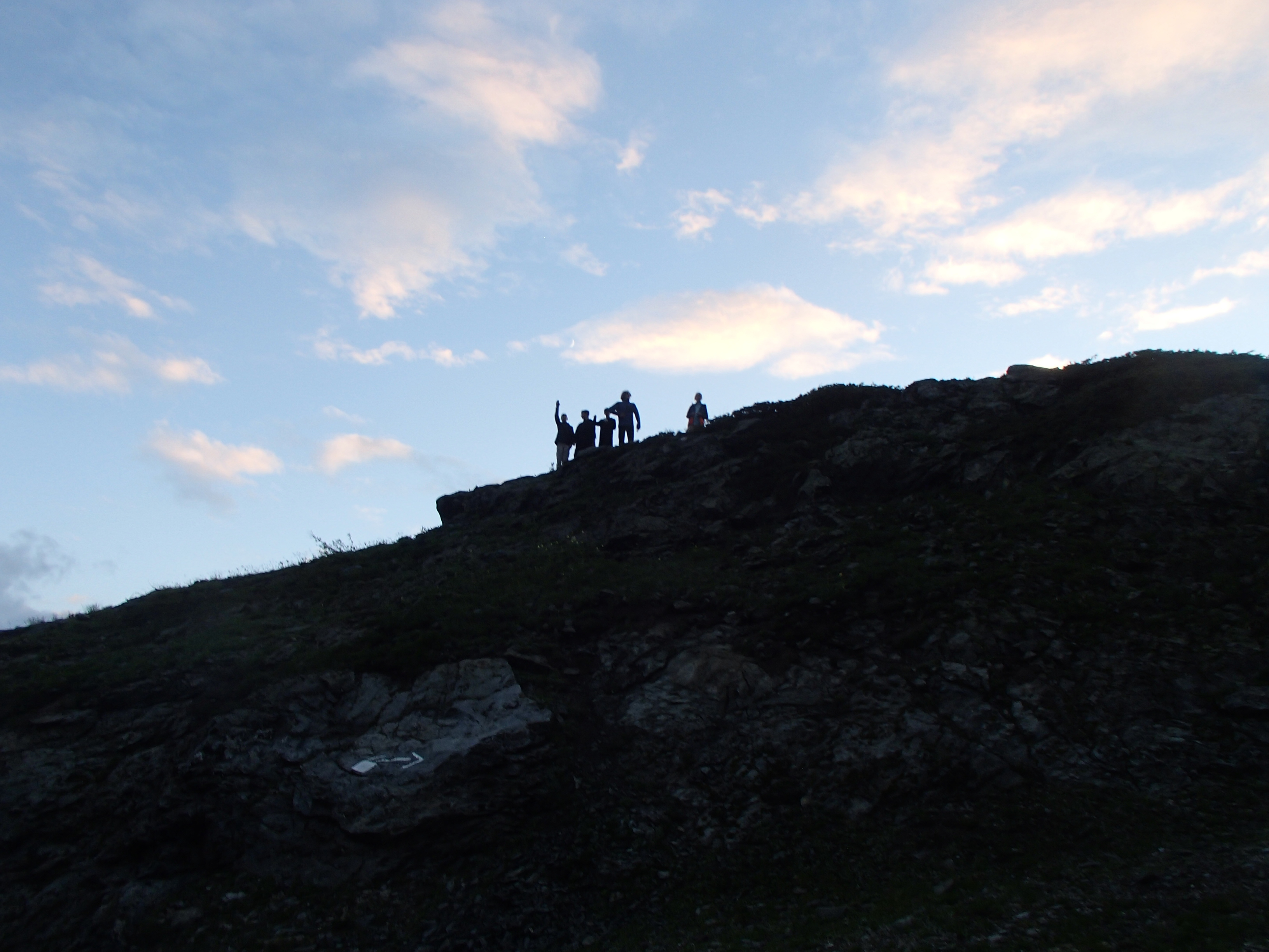 Dès le pique-nique, Fabien doit faire un petit retour case médecin avec une coupure au doigt nécessitant quelques points. Mais il n’a pas dit son dernier mots, puisque désireux de faire le bivouac avec les amis coûte que coûte, il est de retour avec le groupe par la dernière benne du funiculaire et passera la fin de l’aventure avec nous, quelle motivation, bravo à lui !