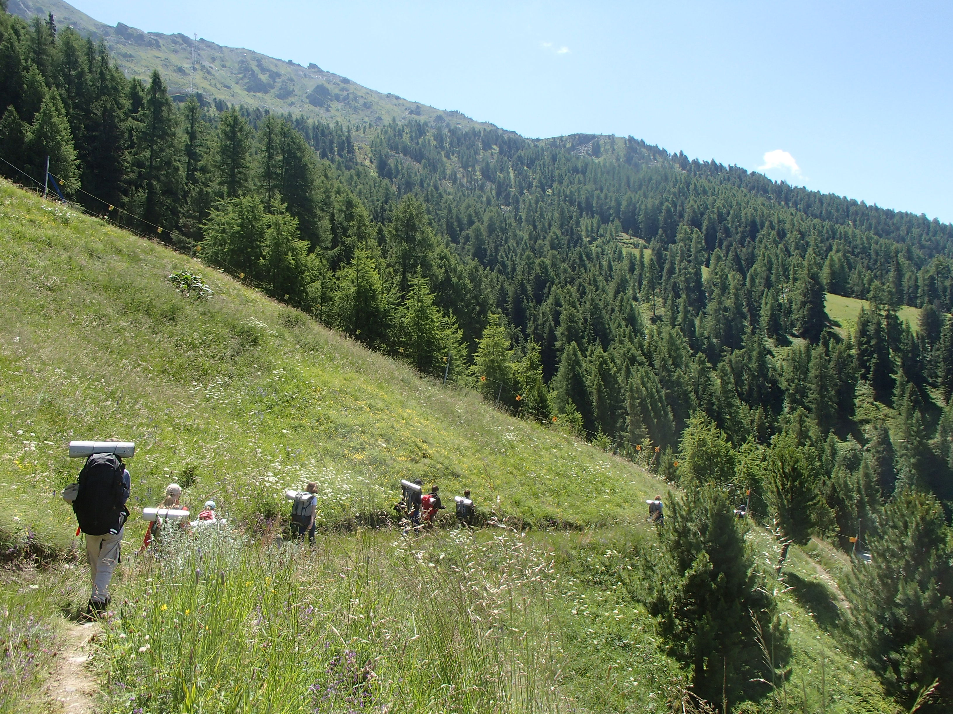 Le matin, un franc soleil et un grand bout de ciel bleu marquent le début de la journée. Les jeunes sont plutôt d’attaque et en forme malgré cette nuit mouvementée. Le moral est bon. Nous pouvons envisager un petit déj, un démontage et un retour sereins sous le soleil. Une bonne partie du groupe commence par descendre chercher du lait frais que la ferme d’alpage proche nous a mis de côté... tellement bon au petit déjeuner ! Enfin, début de la redescente vers une bonne douche, une bonne plâtrée de pâtes carbo et une bonne après midi de repos pour tout le monde ! Rémi, accompagné de Martin prend juste l’itinéraire bis par le funiculaire et le car postal pour écourter la descente. Il a en effet « attrapé » deux jolies ampoules sur le début du trajet.