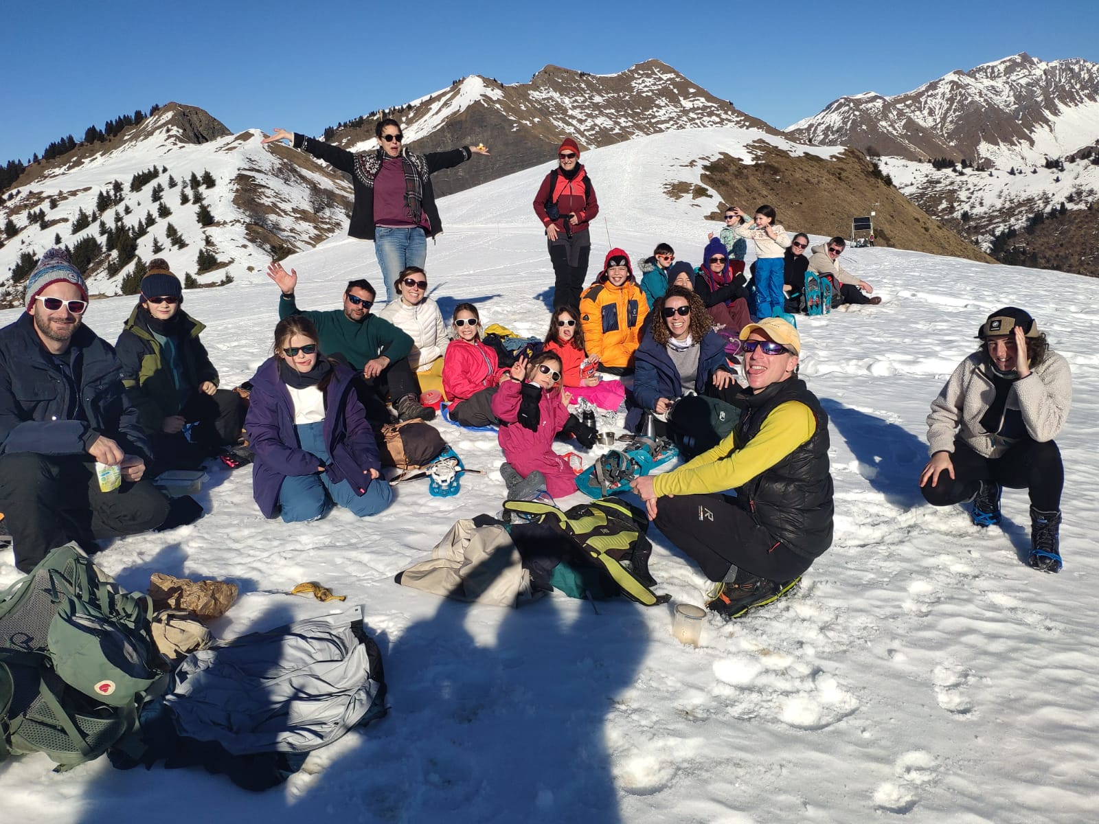 Une partie du groupe a continué à crapahuter dans la neige pour monter toujours plus : les glissades sur les fesses étaient d’autant plus longues. Retour au col pour rejoindre Samoëns en bus. Certains étaient fatigués mais avaient un grand sourire. Vive la montagne ☃️