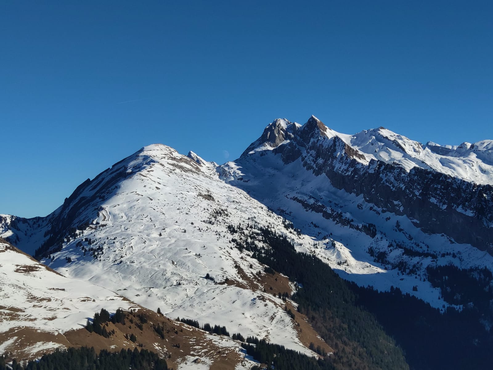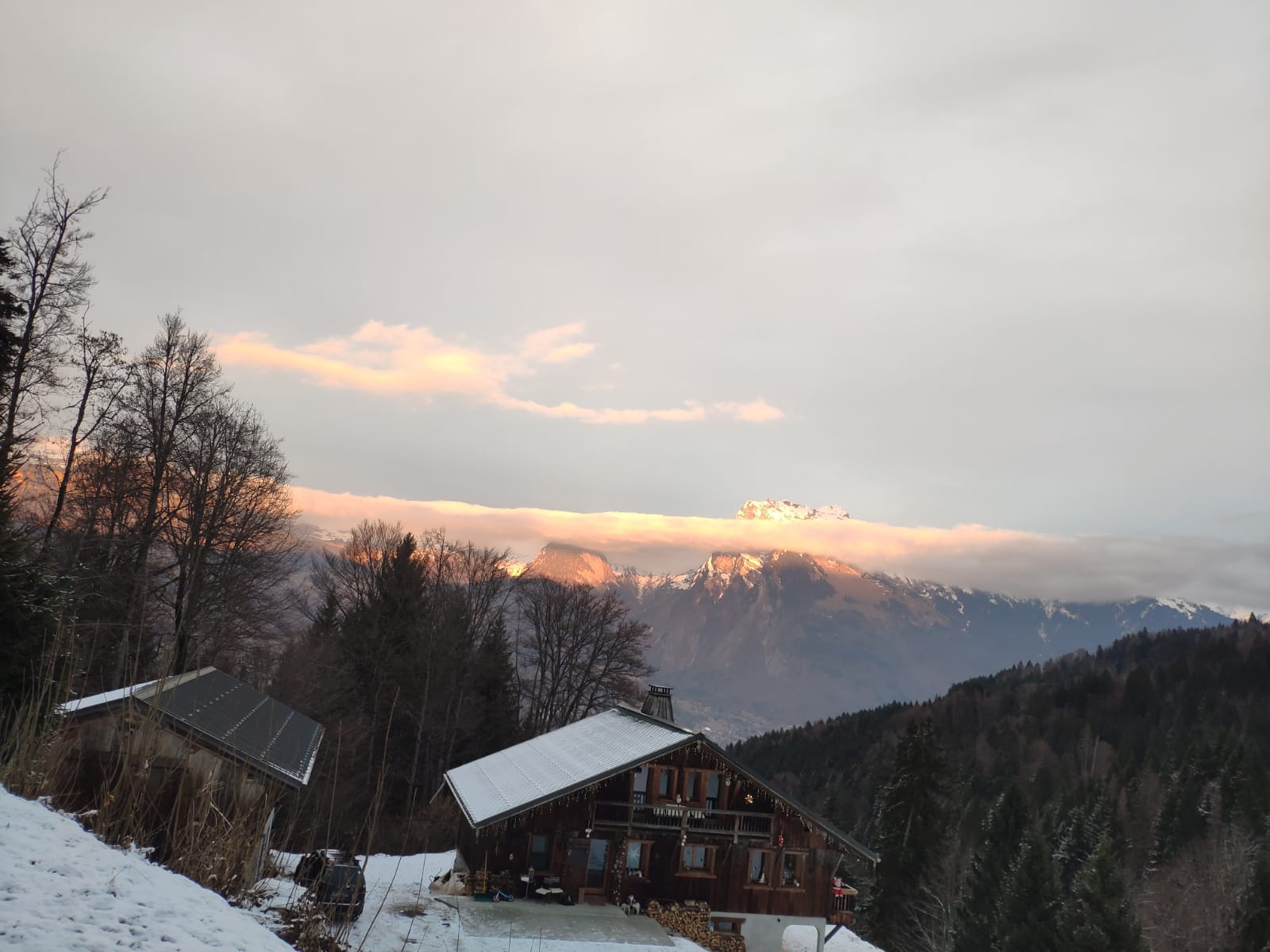 Aujourd’hui, nous avons profité d’une belle journée pour gravir les montagnes. Après une montée en bus au col de Joux Plane à 1700 m d’altitude, nous avons chaussé les raquettes. Le groupe était vraiment en forme, il y avait les « fusées » à l’avant du peloton qui donnaient un rythme d’enfer. En 1h30, nous avons rejoint le sommet de la Bourgeoise : l’endroit idéal pour pique-niquer face au Mont Blanc, le panorama était incroyable !