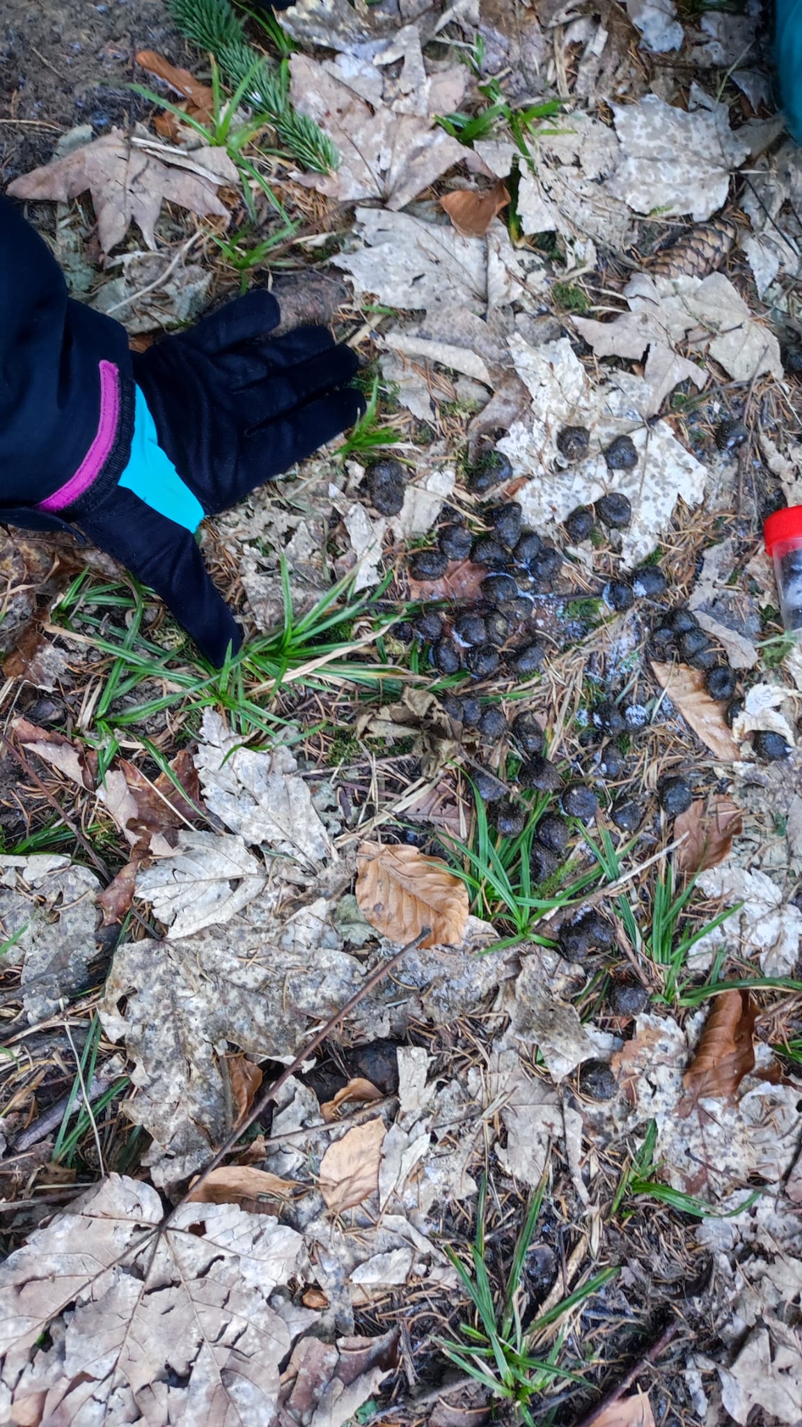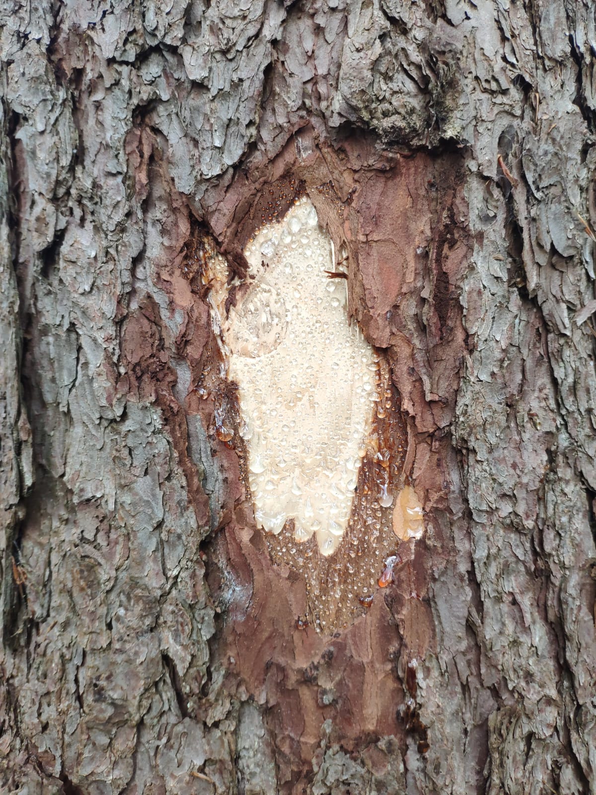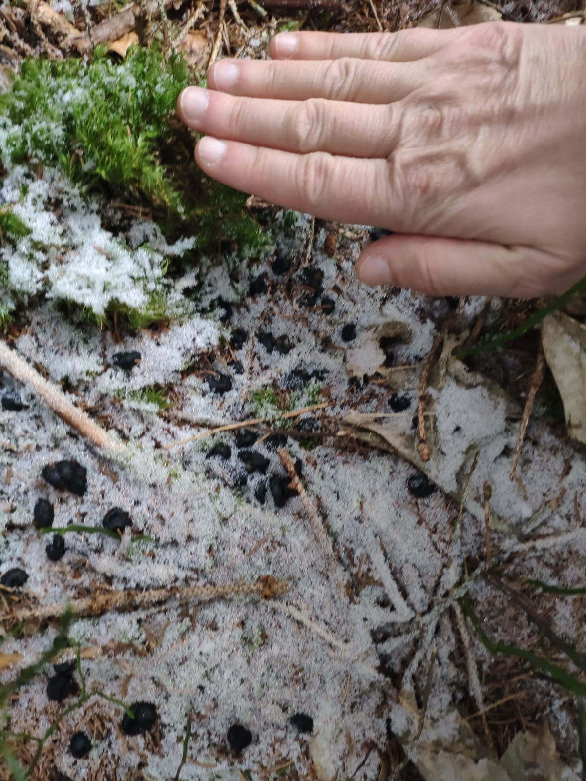 Et… CHUT ! On écoute une mésange boréale. AH ! Et ici, un pic. Mais… ces pics ont fait des trous partout dans les troncs pour chercher à manger ! L’un d’eux a même attaqué une fourmilière et y a laissé une petite crotte blanche.