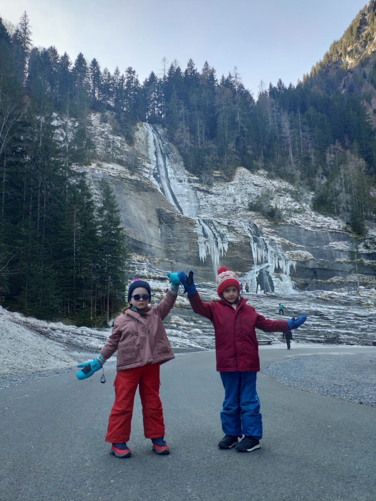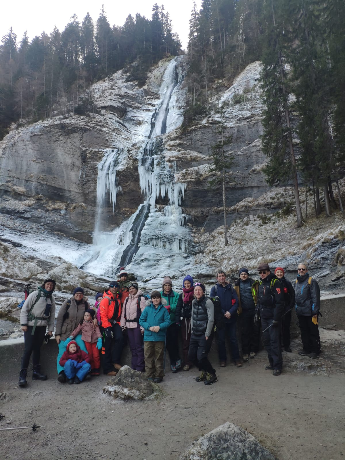 En fin de matinée, certains sont partis skier et le reste du groupe part pour l’ascension de la cascade du Rouget. Elle est recouverte de glaces, nous avons beaucoup de chances de pouvoir la voir dans cet état.